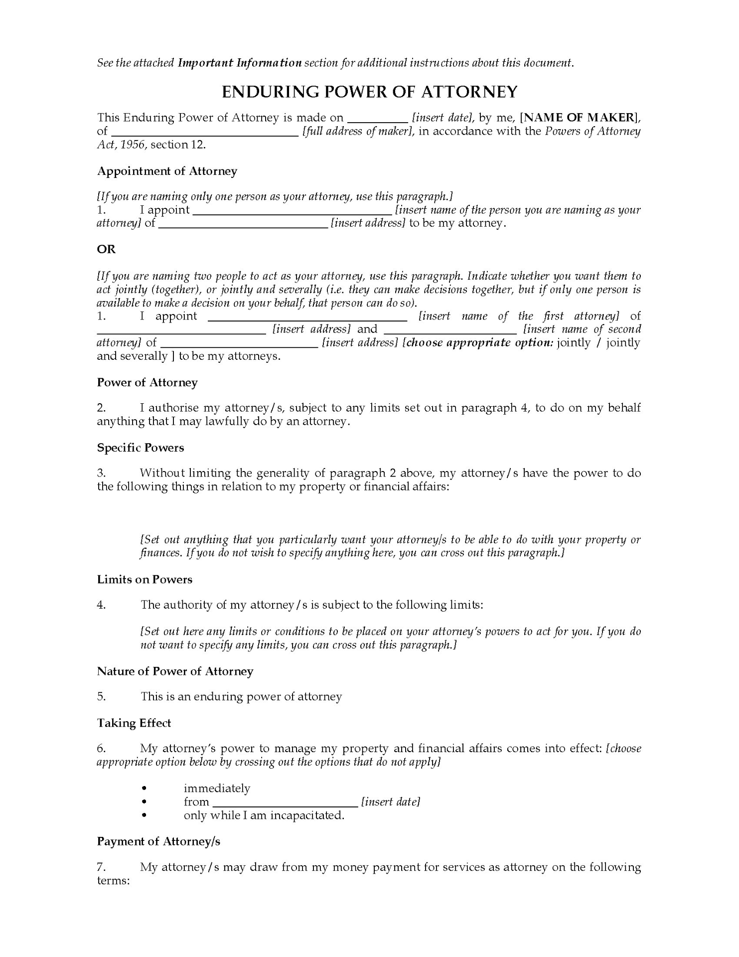 Make your Enduring Power of Attorney with this downloadable template form for Australian Capital Territory.