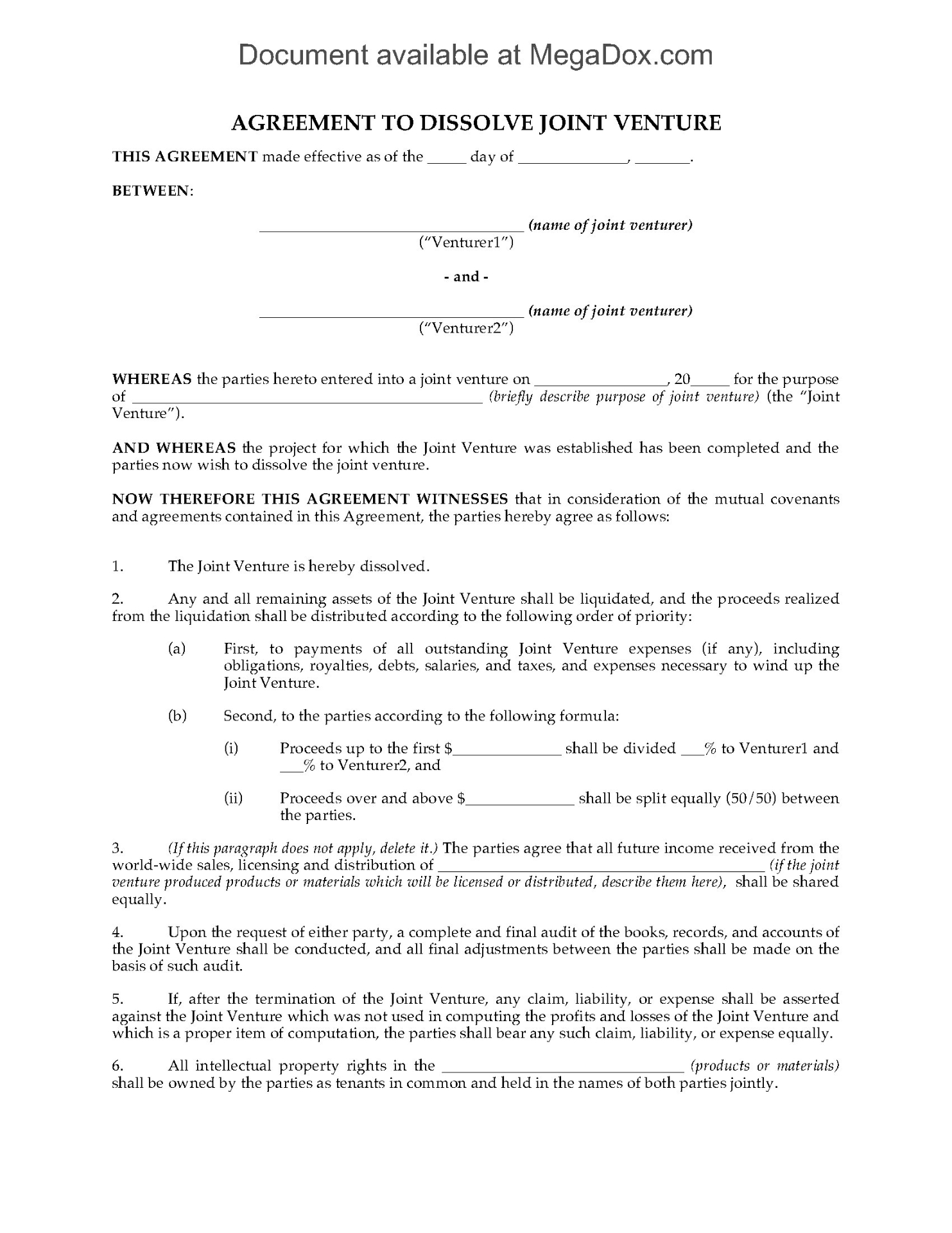 Set up a joint venture to develop and market products in Canada with this template Joint Venture Agreement.
