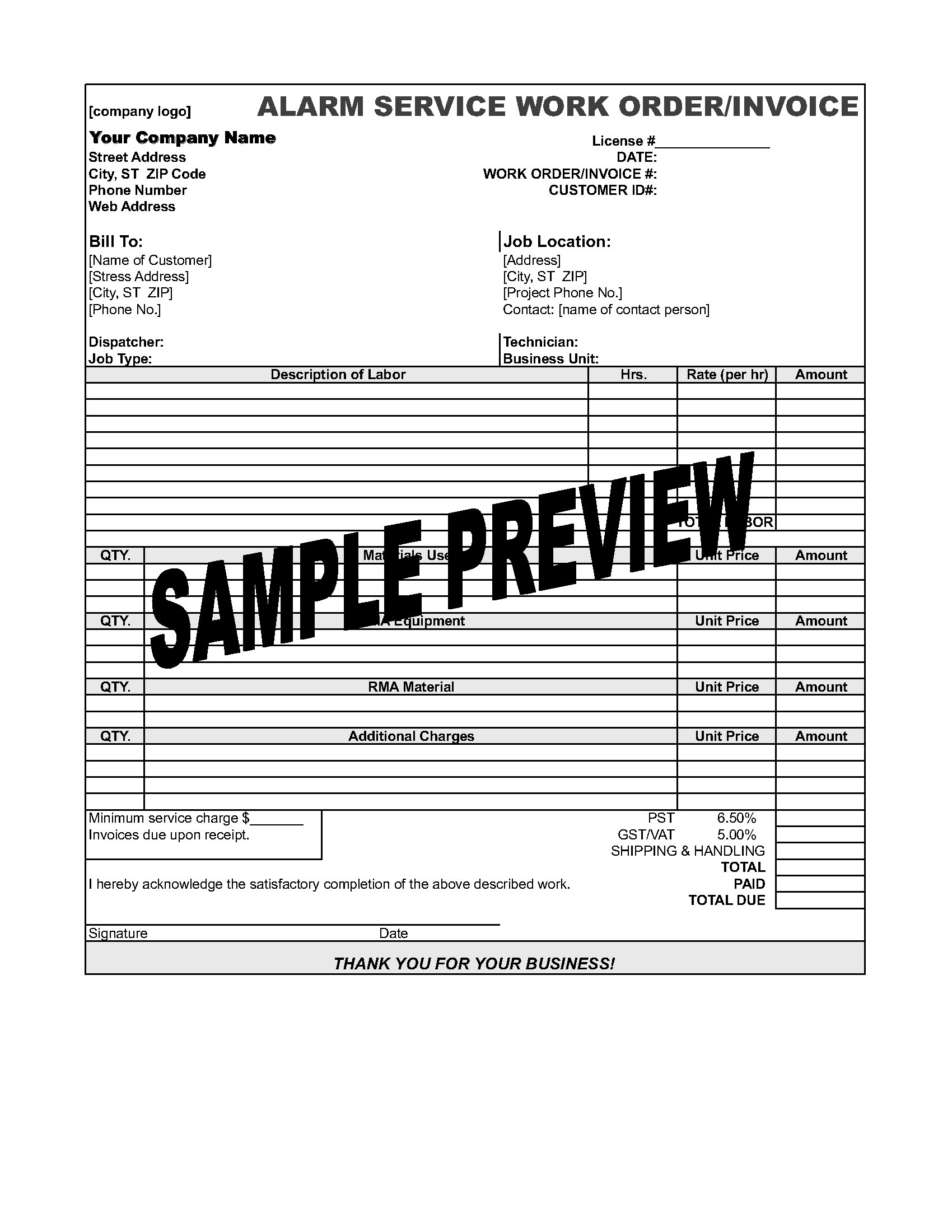 Commercial Alarm Security System Agreement