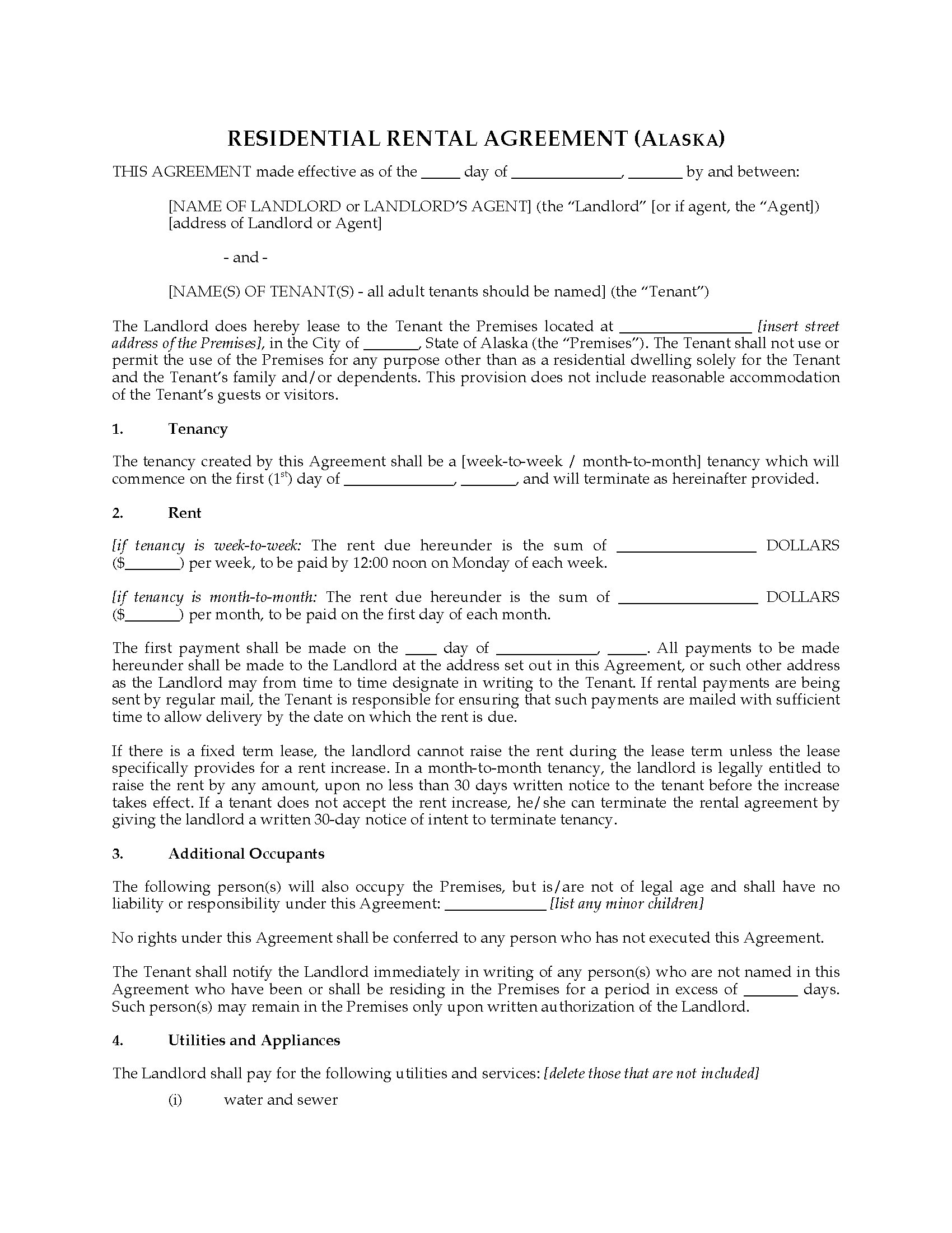Alaska Fixed Term Residential Lease Agreement