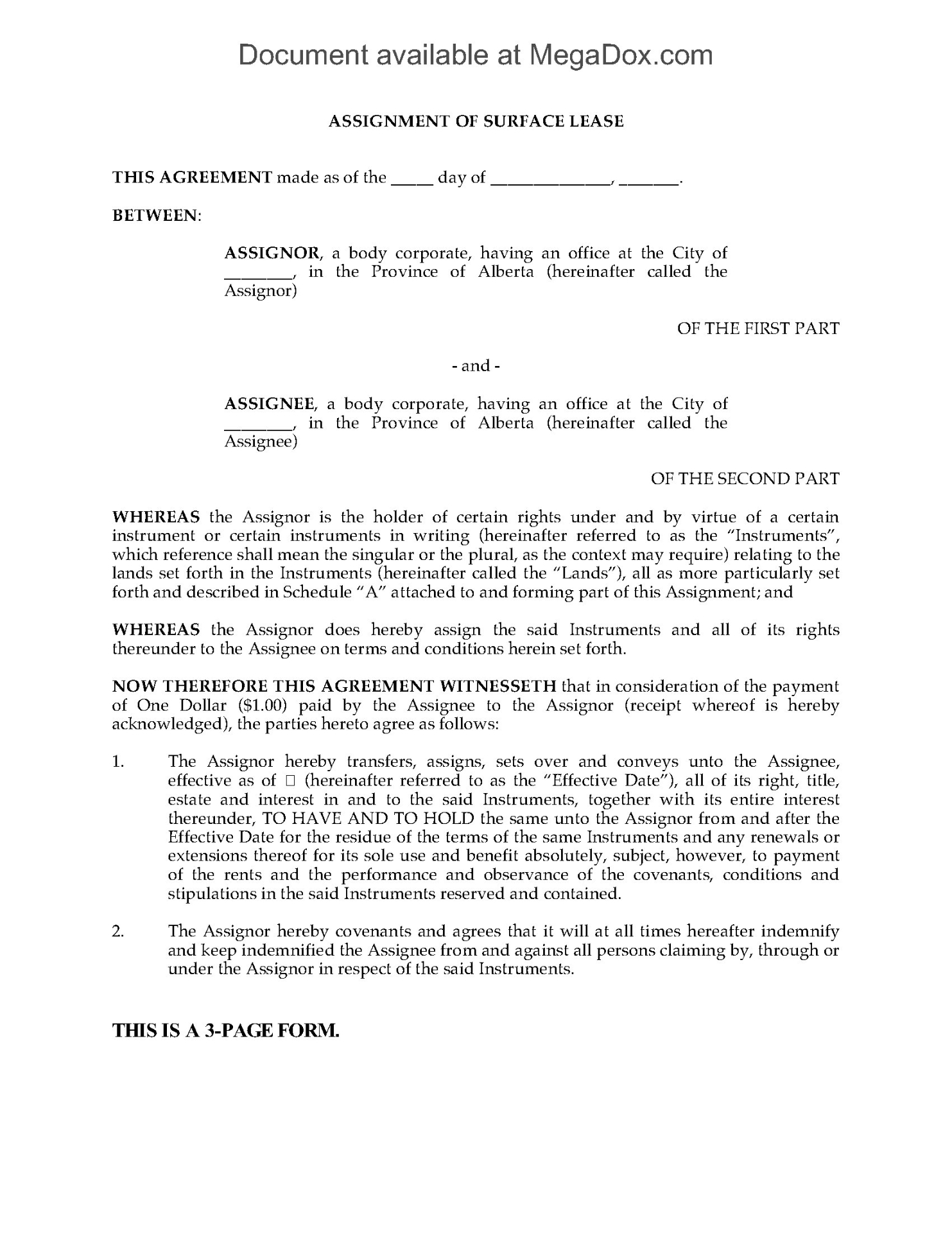 Alberta Surface Lease Agreement