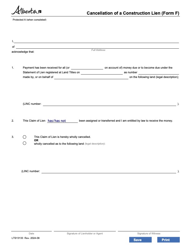 Prepare your Certificate of Substantial Performance for work or materials on a construction project with this downloadable template form for Alberta projects.