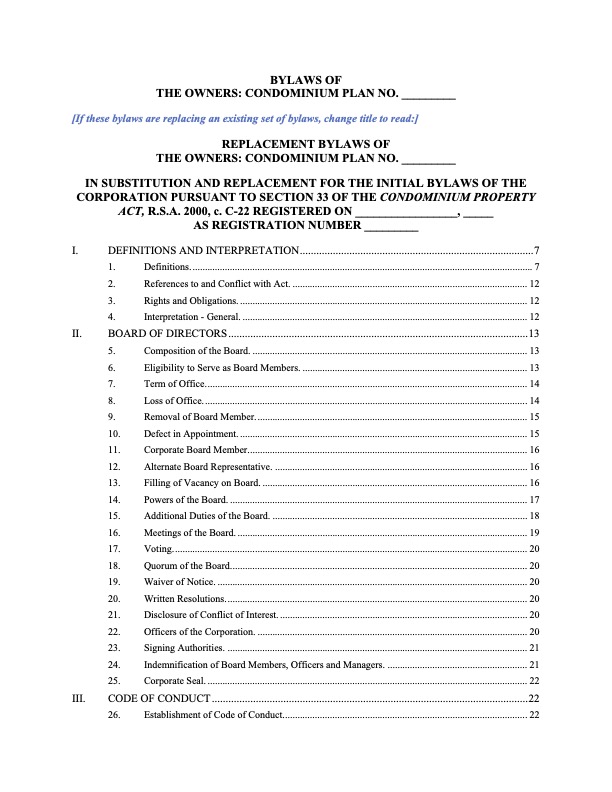 - This agreement template complies with the provisions of the Alberta Condominium Property Act.