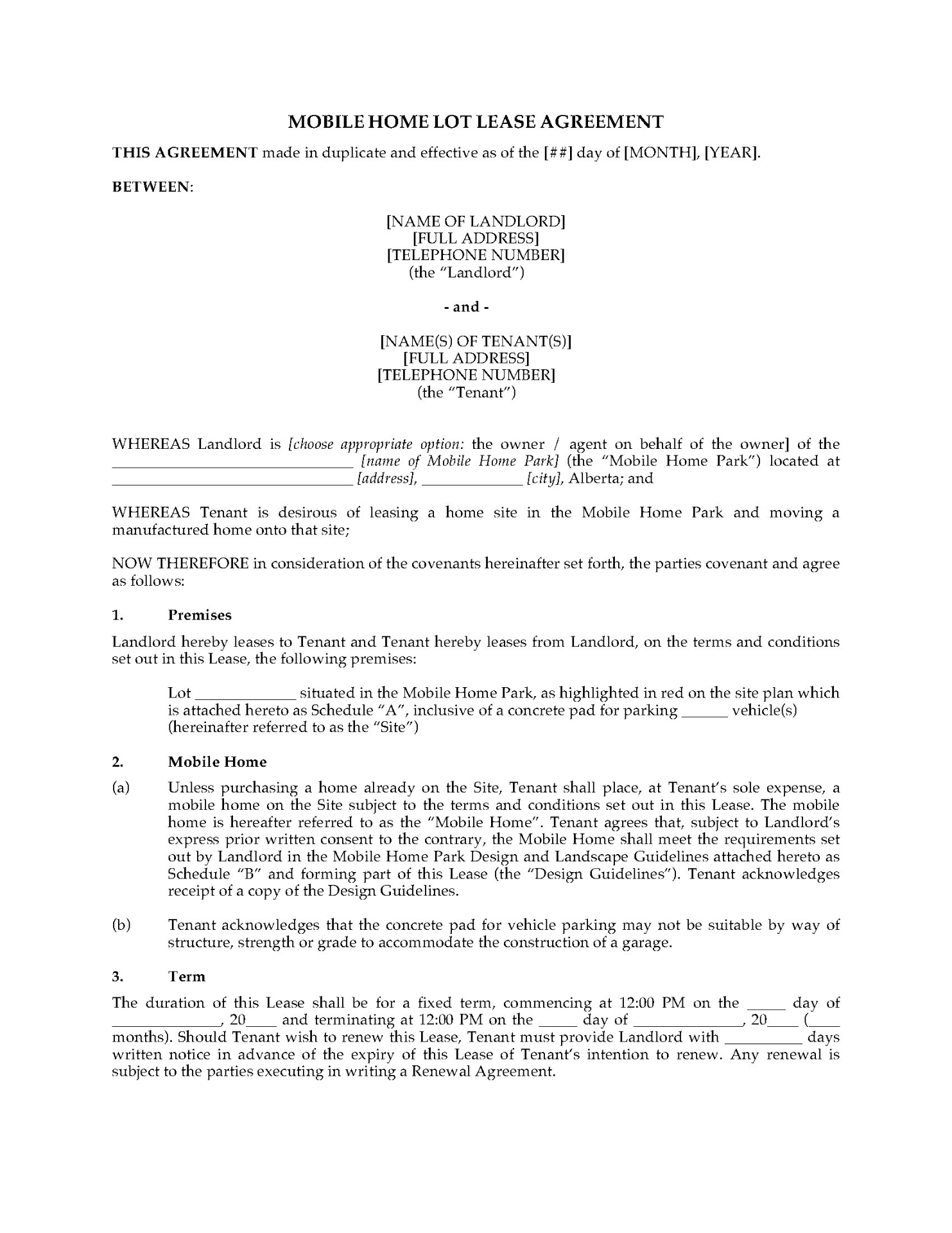 New Brunswick Lease Agreement for Mobile Home Site