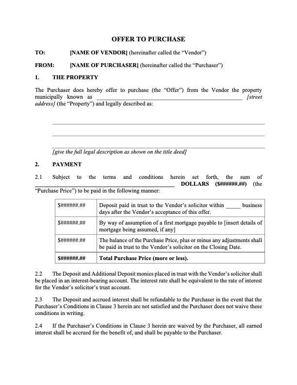 - The purchaser will pay the purchase price to the vendor over an agreed-upon period of time.