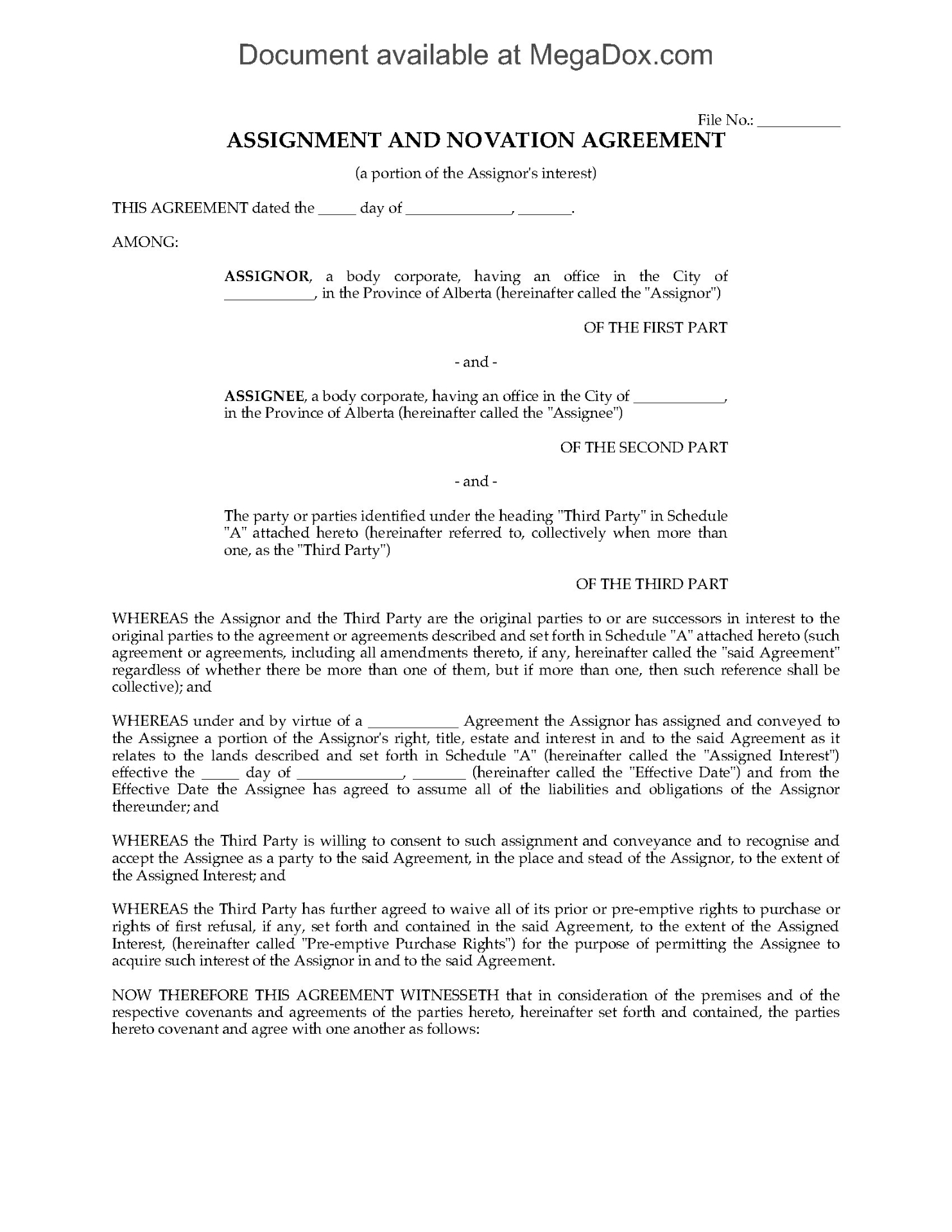 - Novation. The assignor novates the new operator as a party to the original agreement under which the assignor acquired its interest.