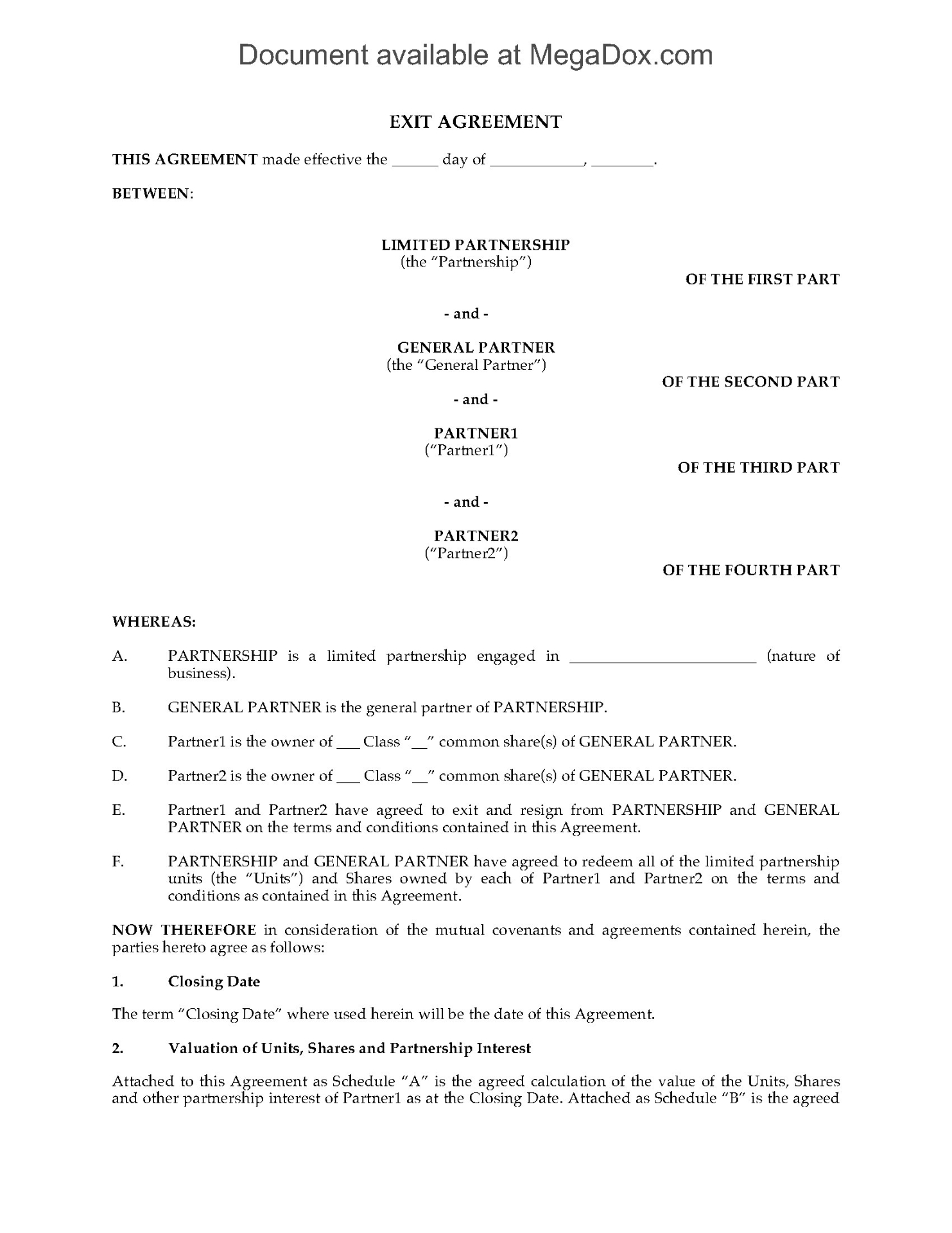 - The seller also releases the Limited Partnership from any claims.