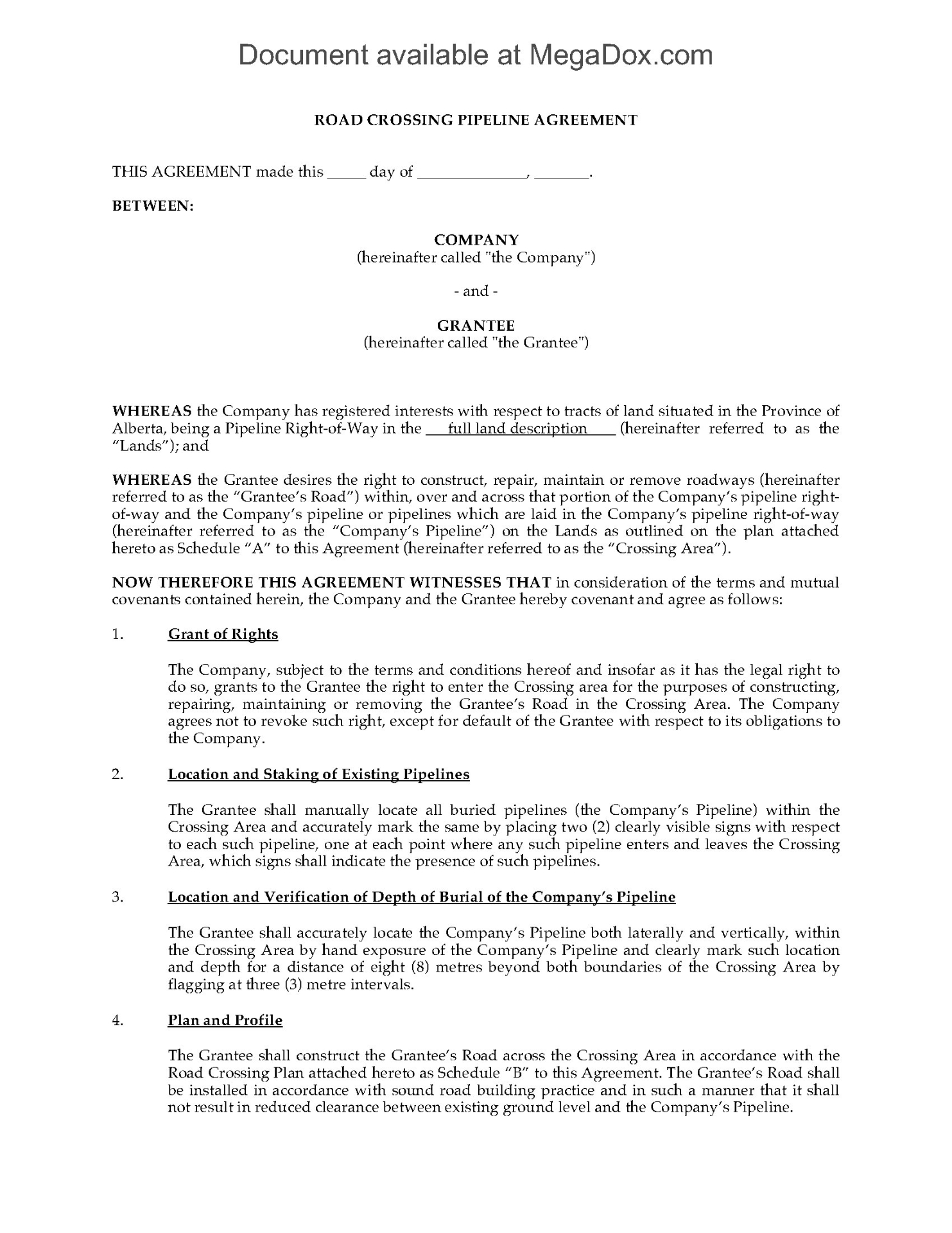 Alberta Pipeline Crossing Agreement