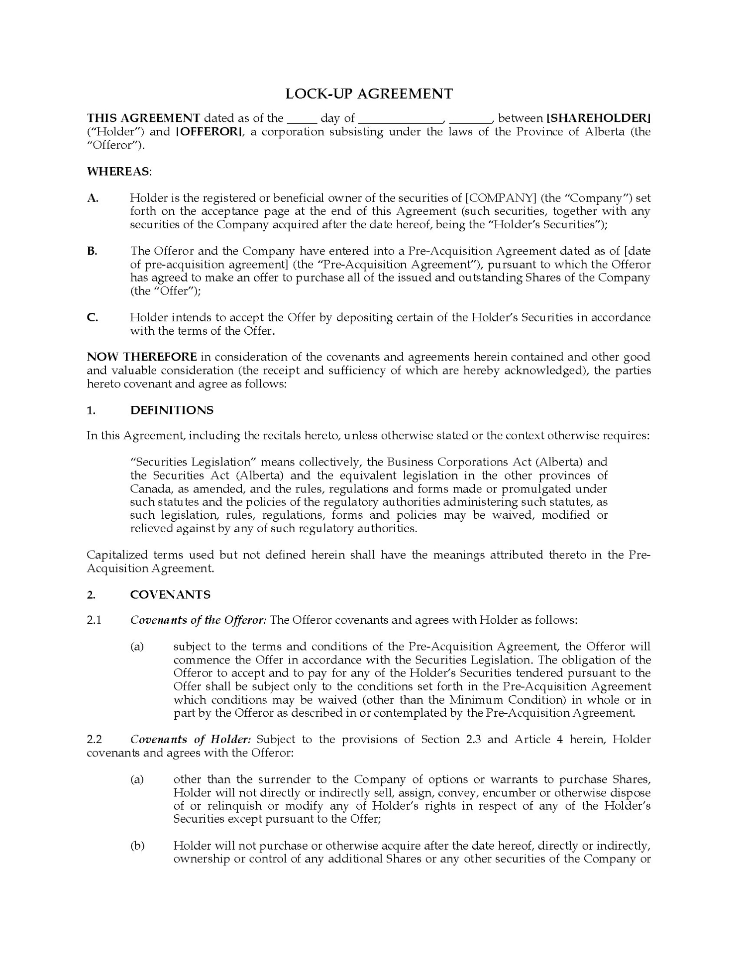 - This legal template is intended solely for use in the Province of Alberta, Canada.