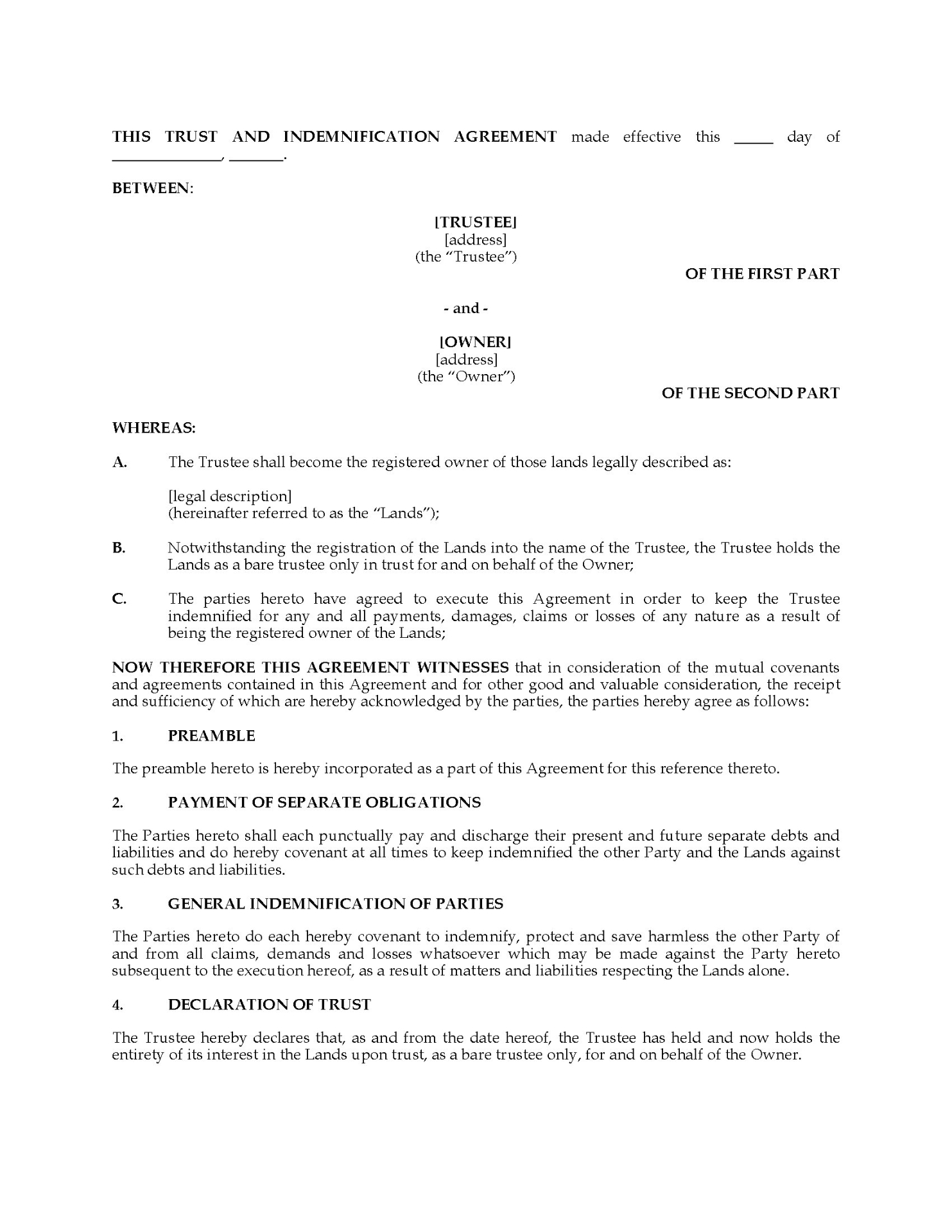 Prepare a simple Trust Agreement for Land with this downloadable template form.