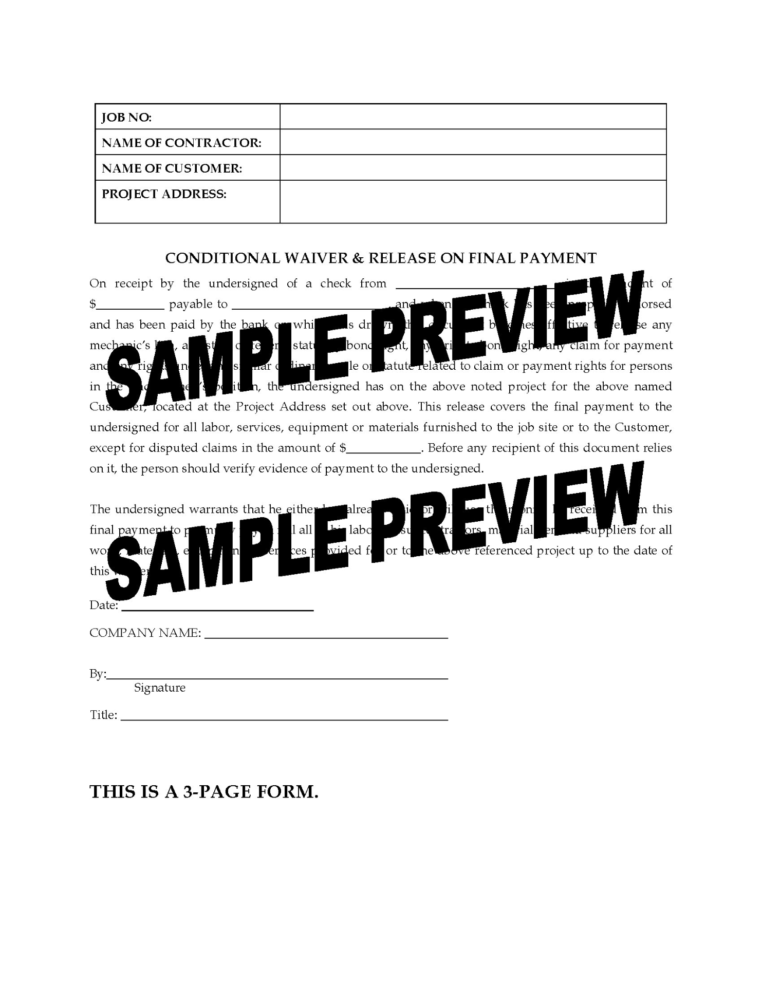 - Do not use this form for progress payments. It is only for final payments.