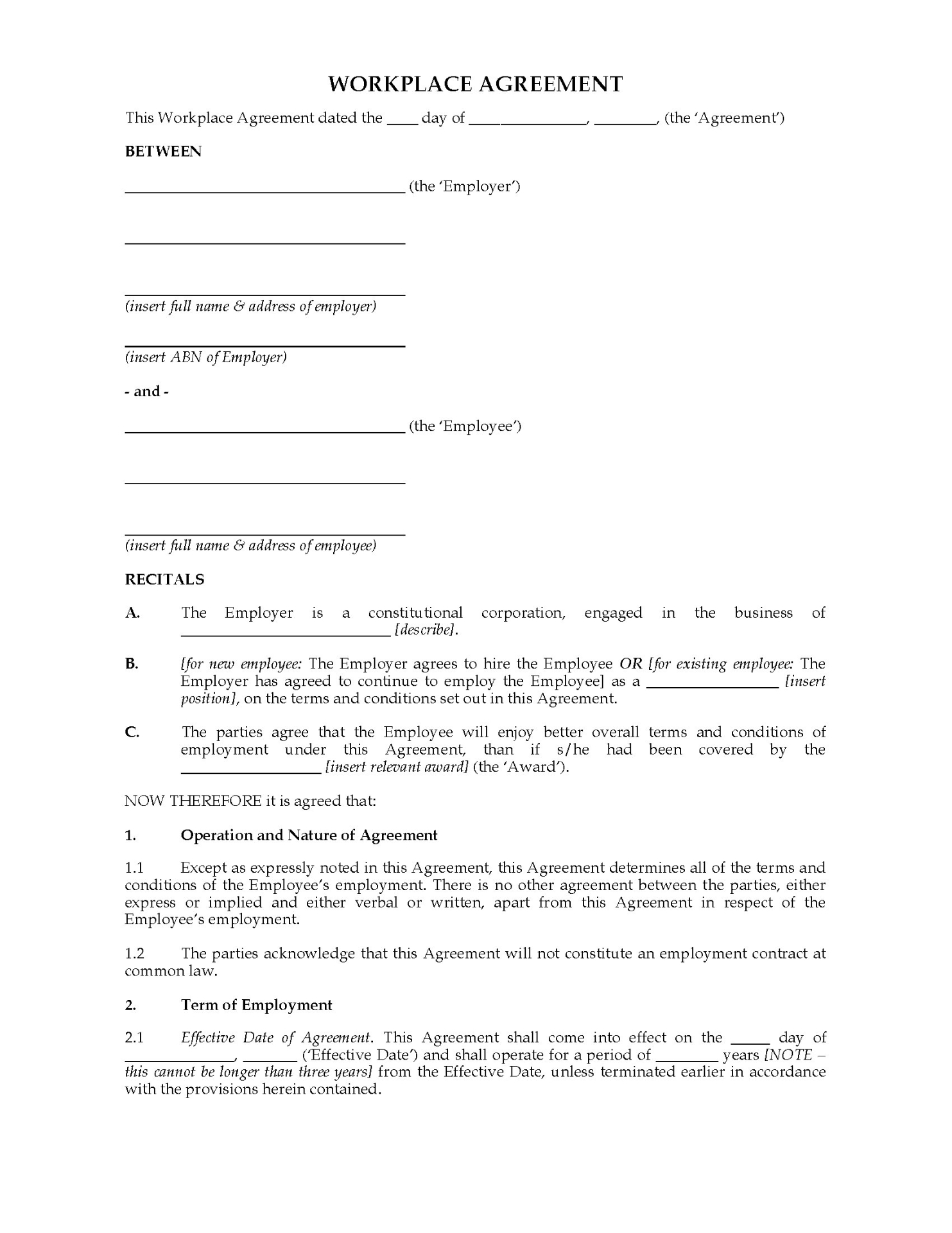 Workplace Agreement | Australia