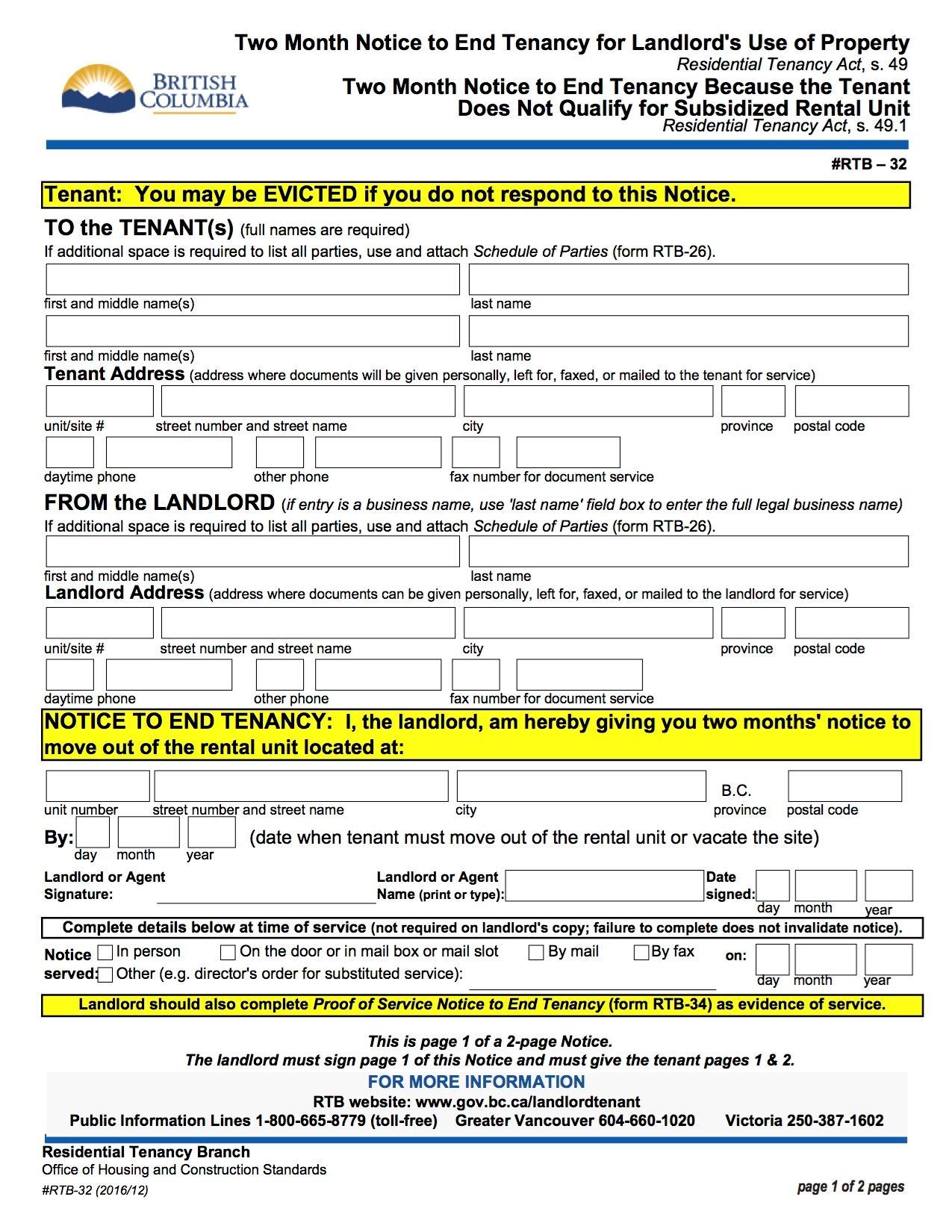 - BC Residential Tenancy Office Form RTB-30.