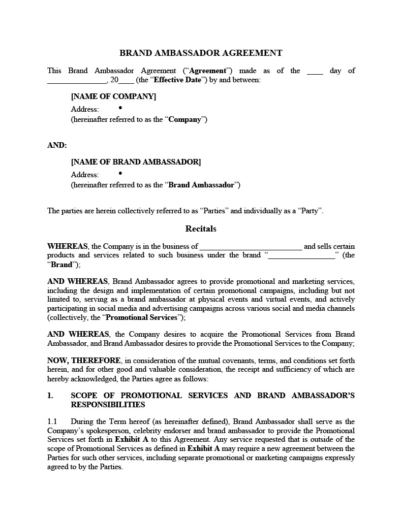 - The influencer will promote the company's products, services and brand through posting original content on various social media platforms.