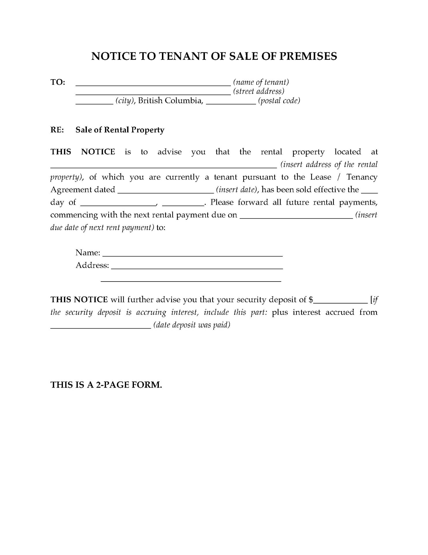 - The Notice must be served by a landlord on the tenant of the rental premises at least 3 months prior to the rent increase.