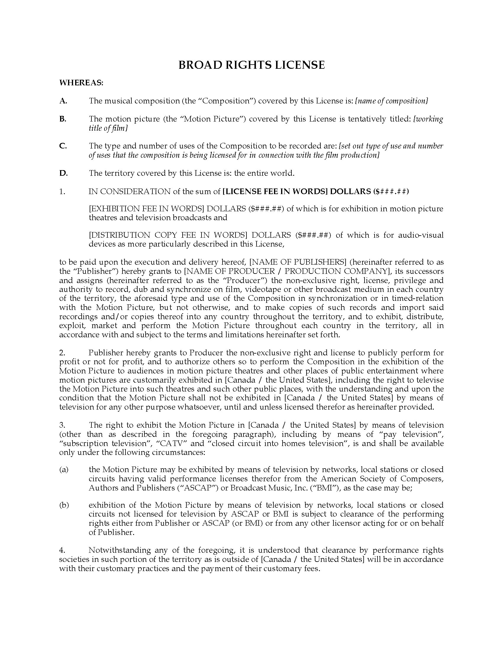 If you want to use specific music for the soundtrack of your movie, you'll need to obtain the rights from the owner with this Broad Rights Synchronization License.