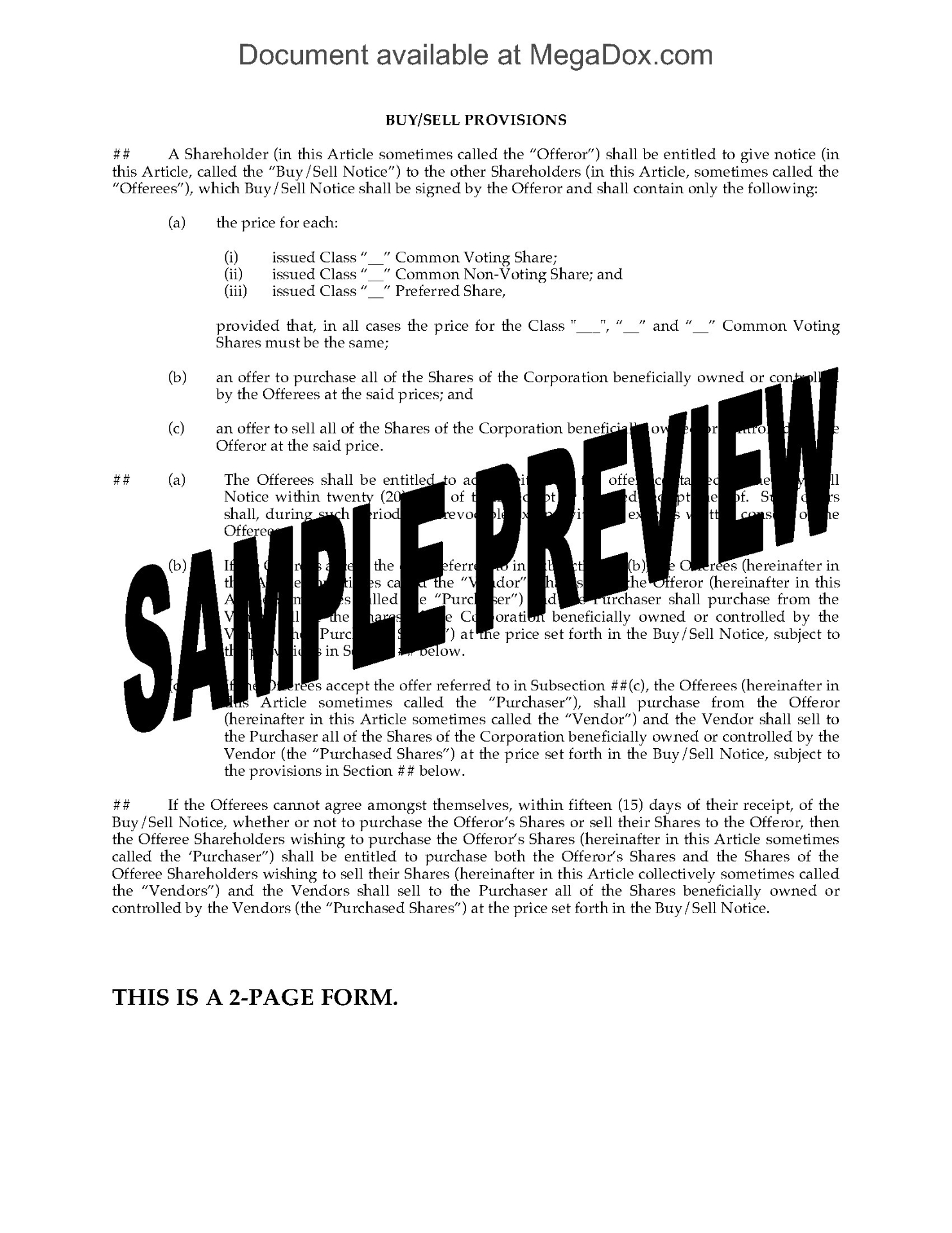 - The share purchase agreement must include an offer by the buyer to purchase a pro rata share of the other shareholders' shares on the same terms and at the same time.