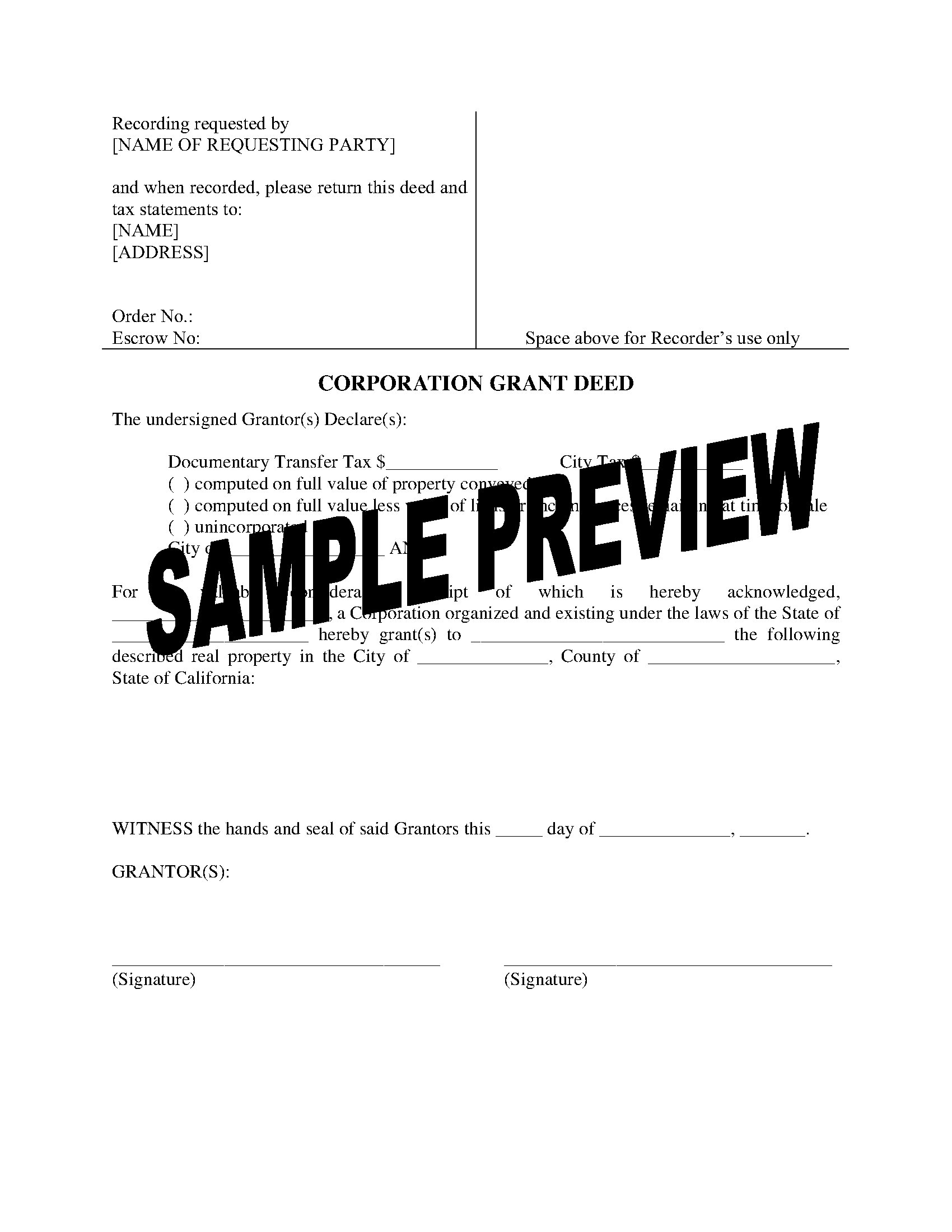 This California Corporation Grant Deed is in MS Word format, and is easy to download, fill in and print.