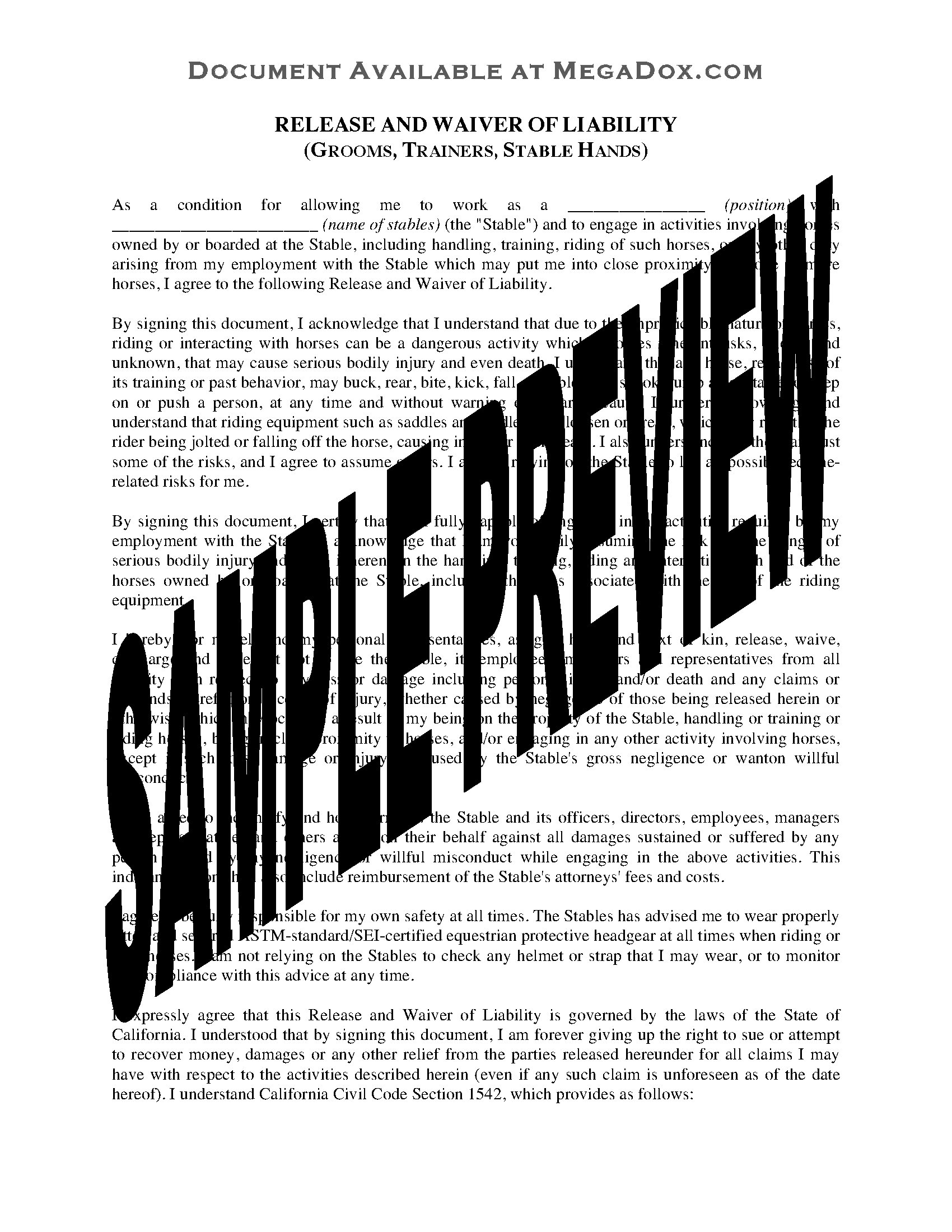 Do you offer horseback riding, lessons or related activities in the U.S.? Protect your business and employees with this customizable Release Form.