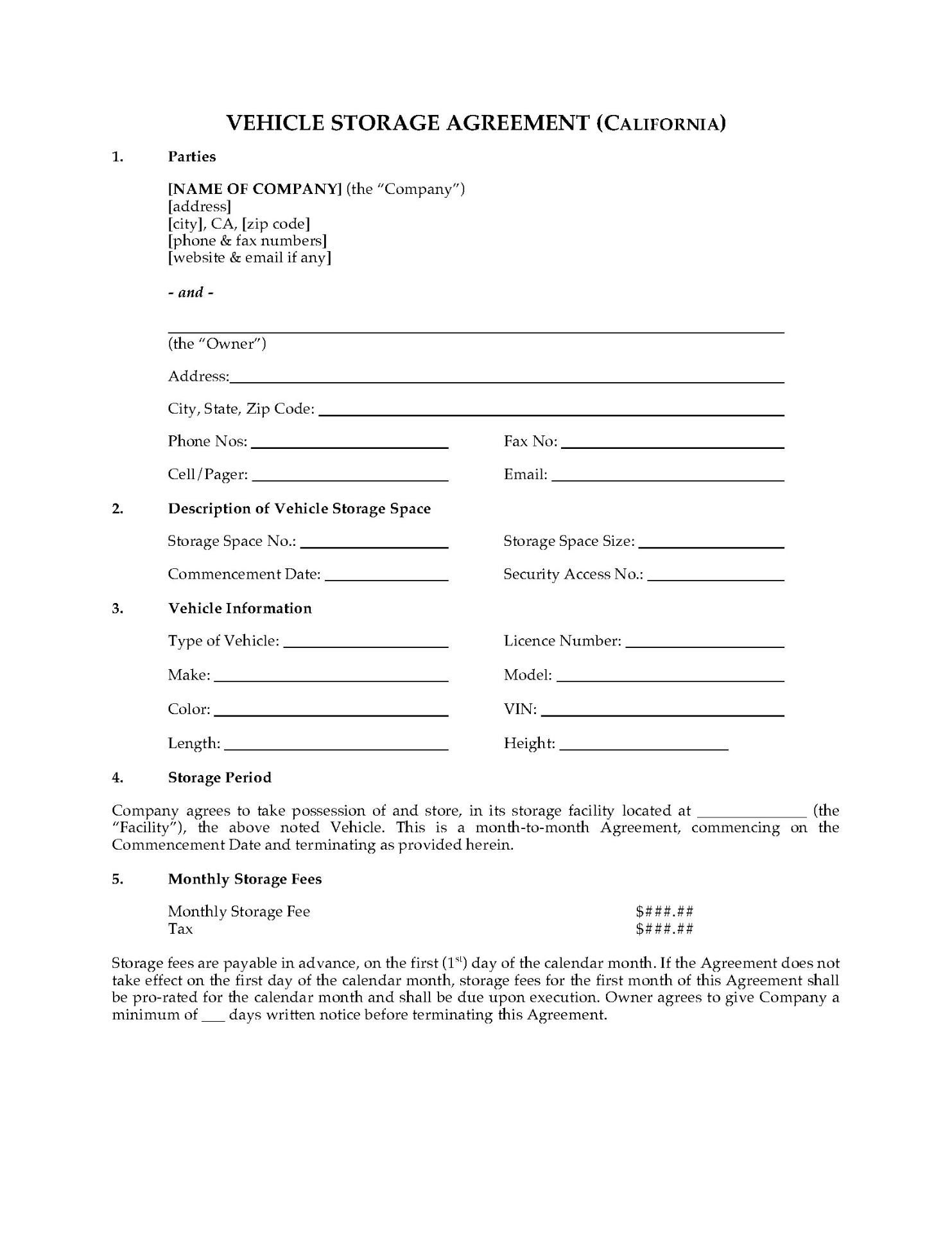 Rent vehicle storage in a self-storage facility to a customer with this template California Boat and RV Storage Rental Agreement.
