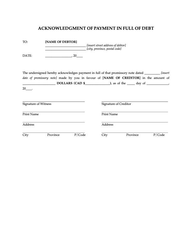 This Promissory Note template is suitable for use throughout Canada, with the possible exception of Quebec where a different French-language form may be required.