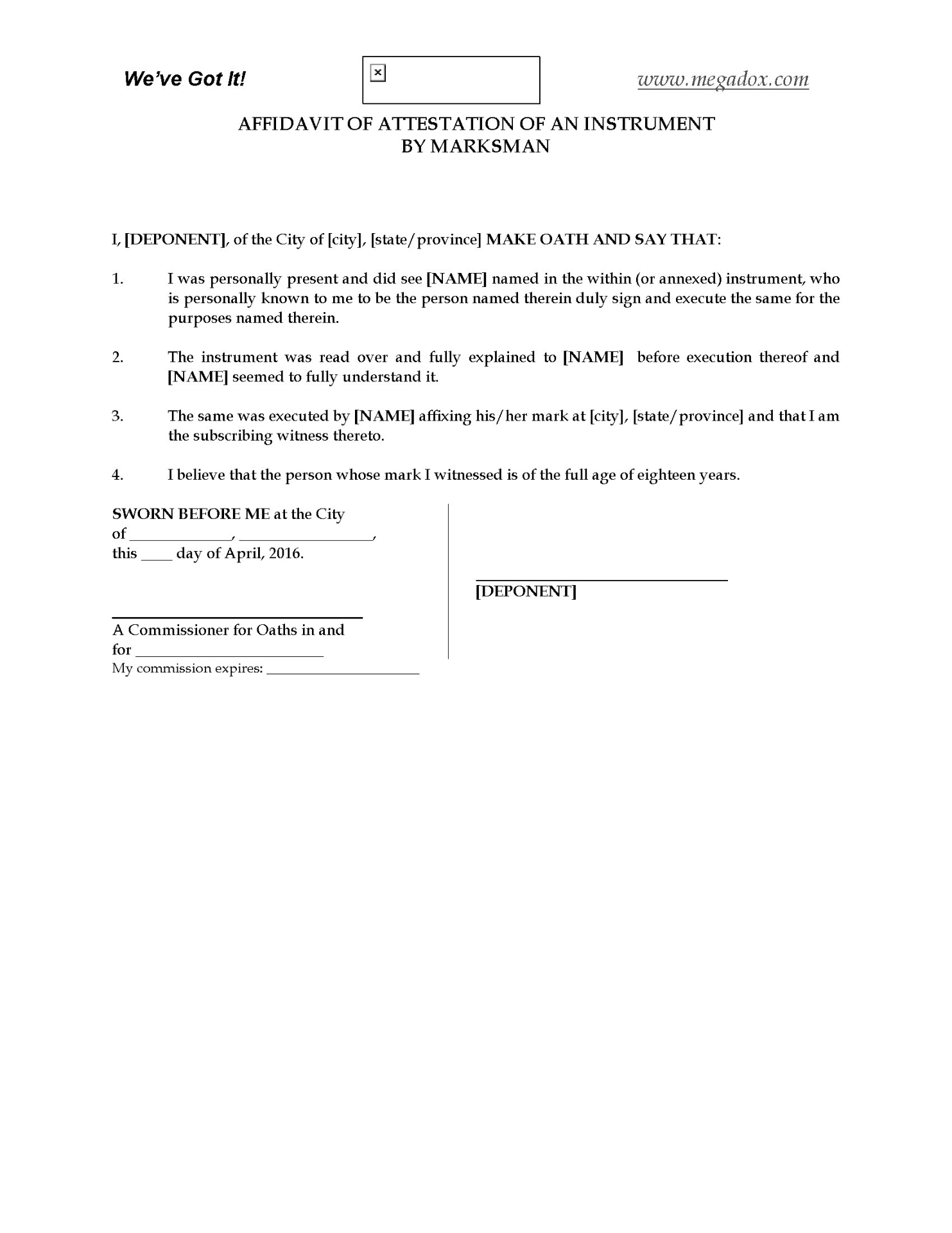 Affidavit of Execution Form | Canada