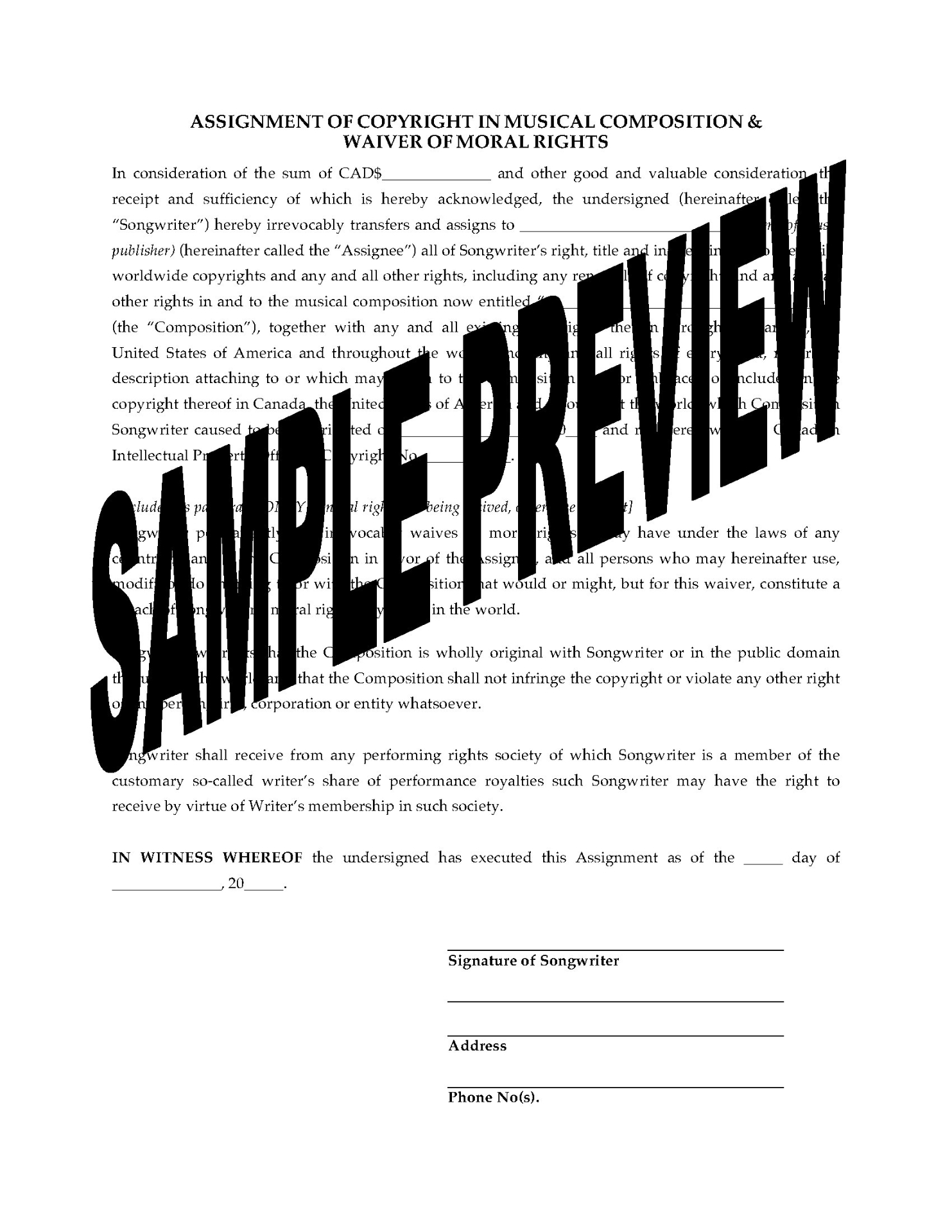 - This Music Publishing Agreement template can be used in either the United States or Canada.