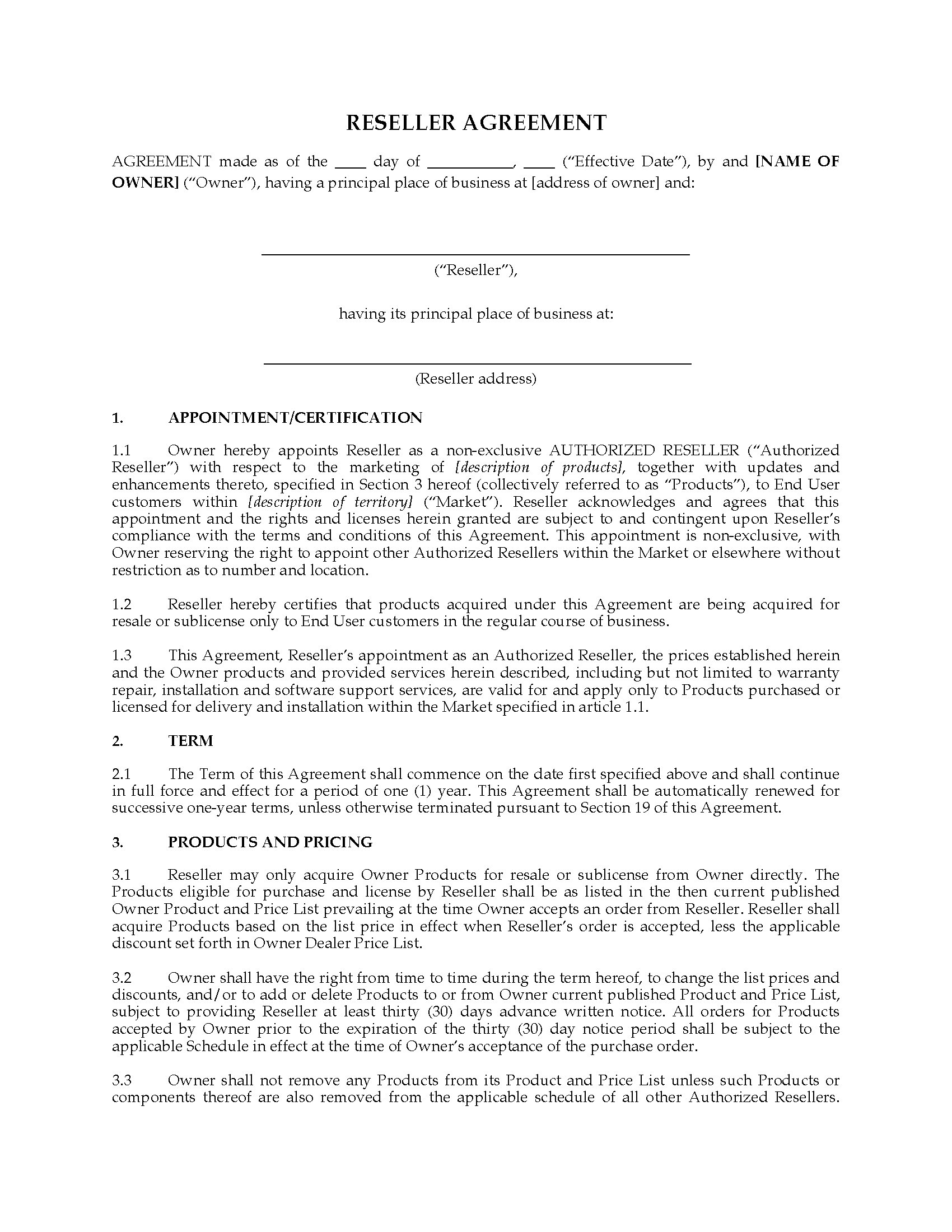 - The form includes an undertaking by the owner of the software to grant a license to the reseller if the sublicense is terminated for any reason.