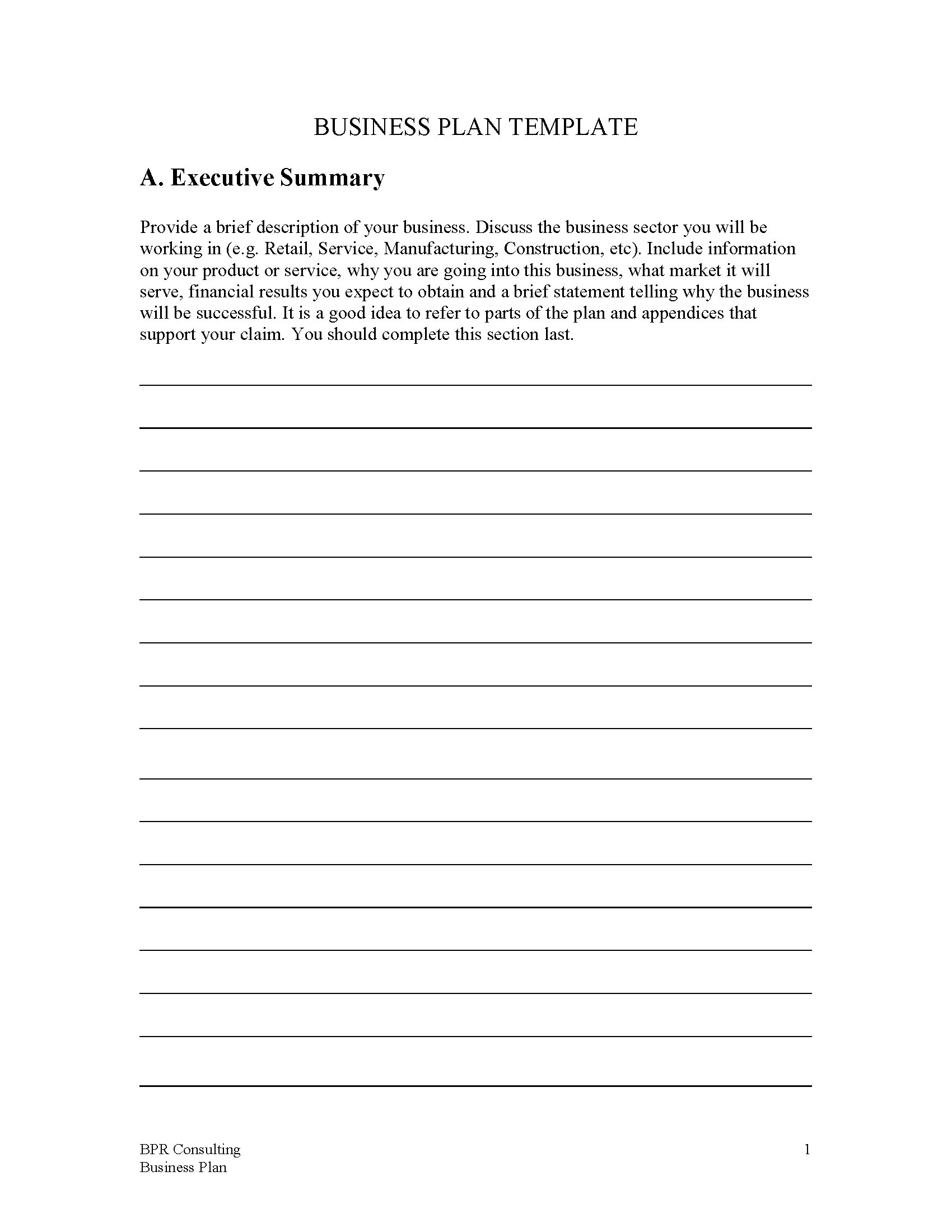 Each section of the business plan contains clear instructions to guide you through completing the document. The template is fully customizable, allowing you to adjust it to meet the specific requirements of your consulting business.