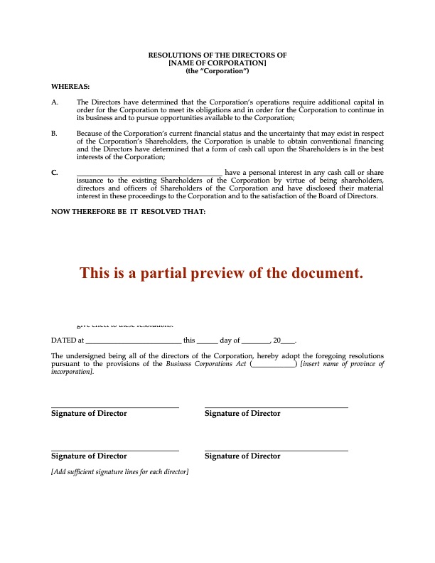 Declare a safe income dividend for shareholders of a Canadian corporation with this downloadable Directors Resolution template.