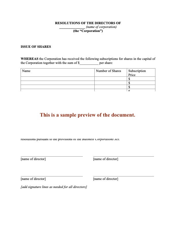 Directors Resolutions to Organize Corporation | Canada