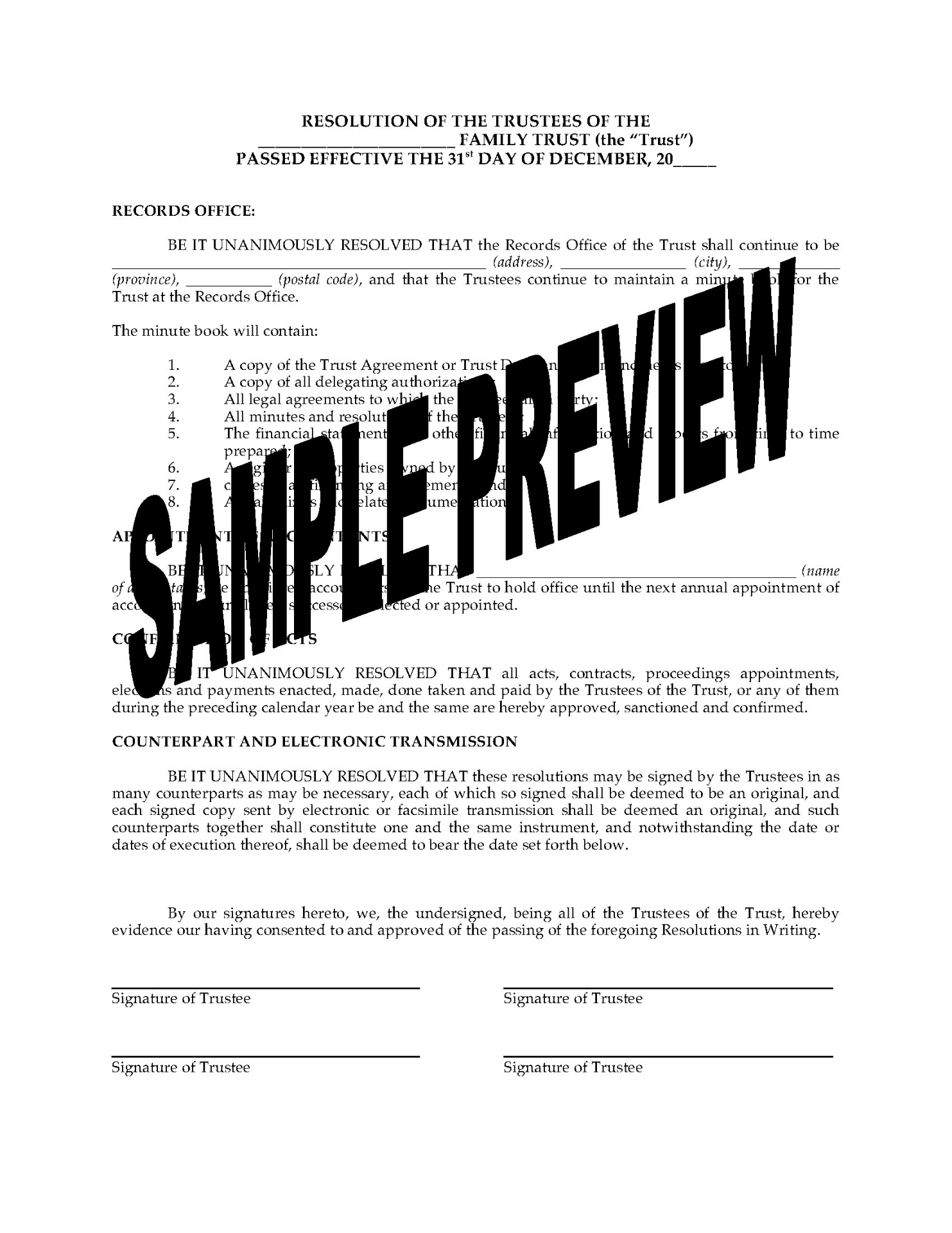 Family Trust Forms Package to Replace Trustee | Canada