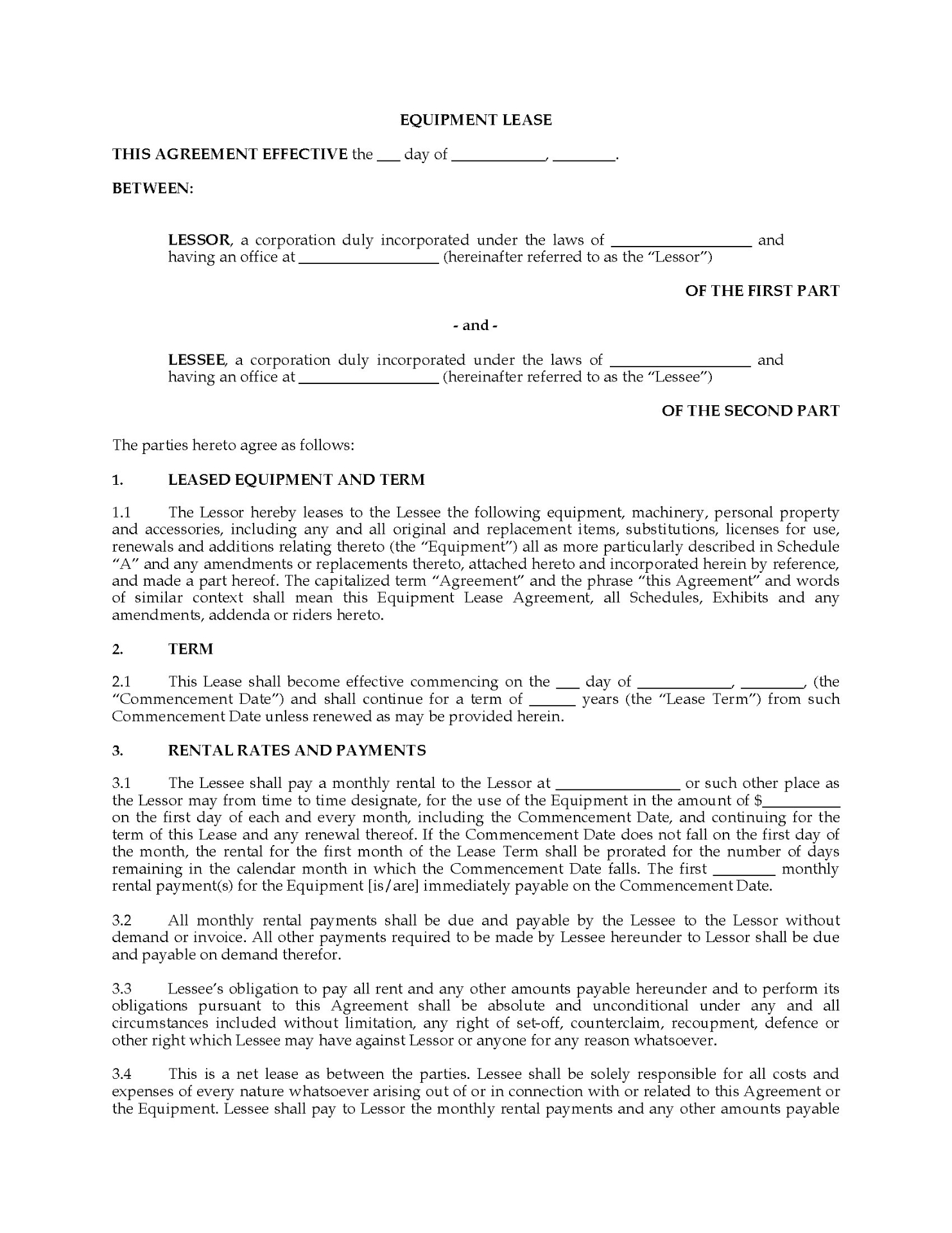 - The lessor does not give the lessee any warranty or guaranty with respect to the equipment.