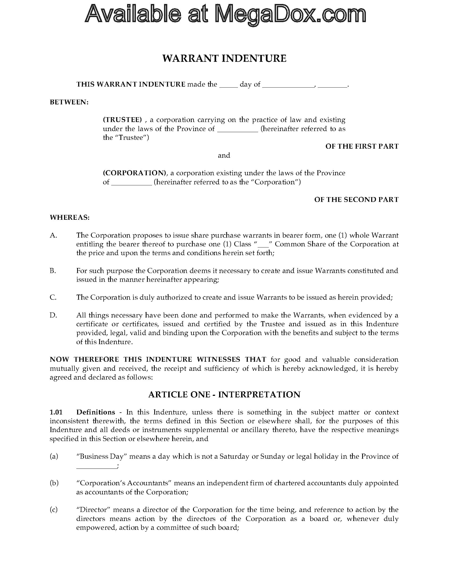 - warrant indenture form (5)