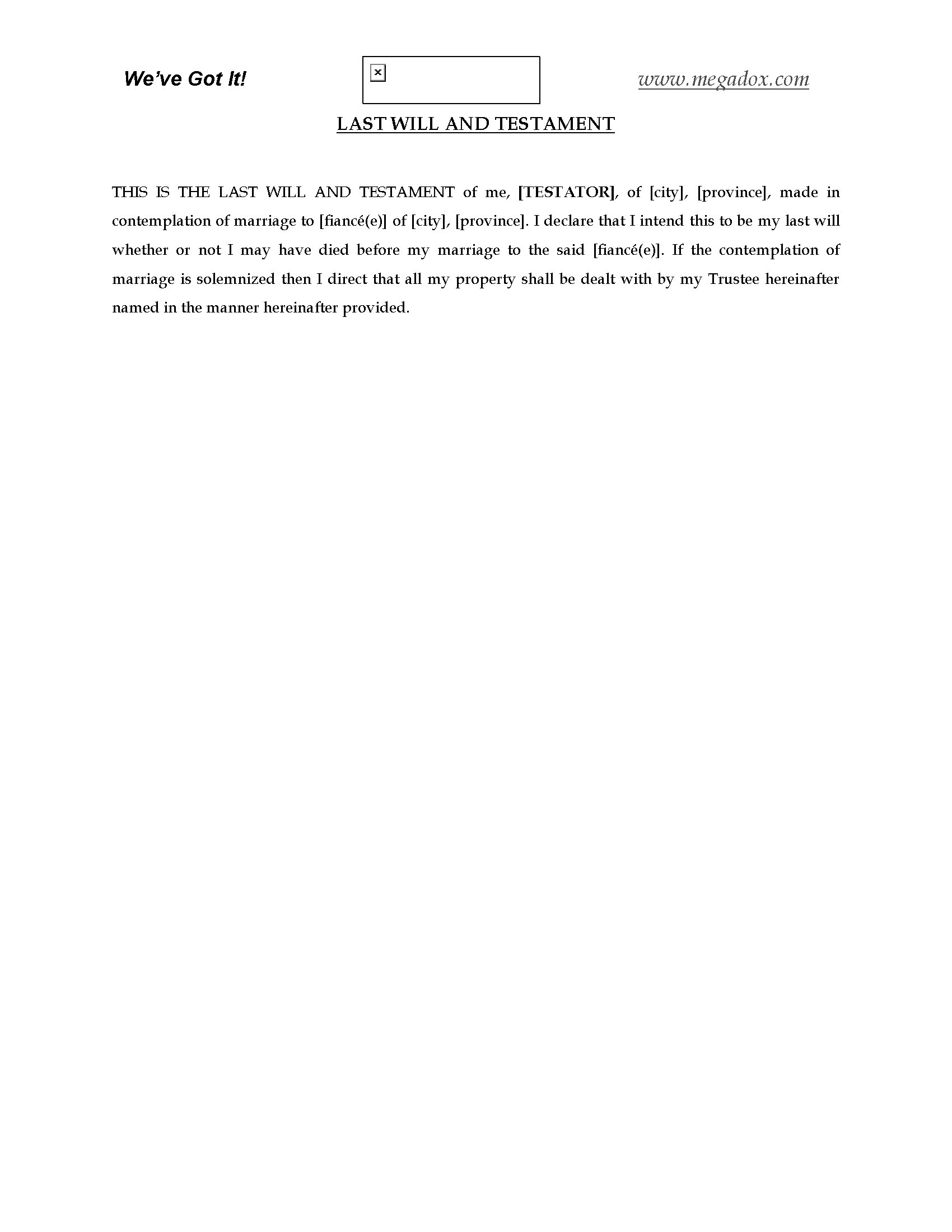 - Last Will and Testament form, with instructions to help you complete the document. Special instructions for Quebec.