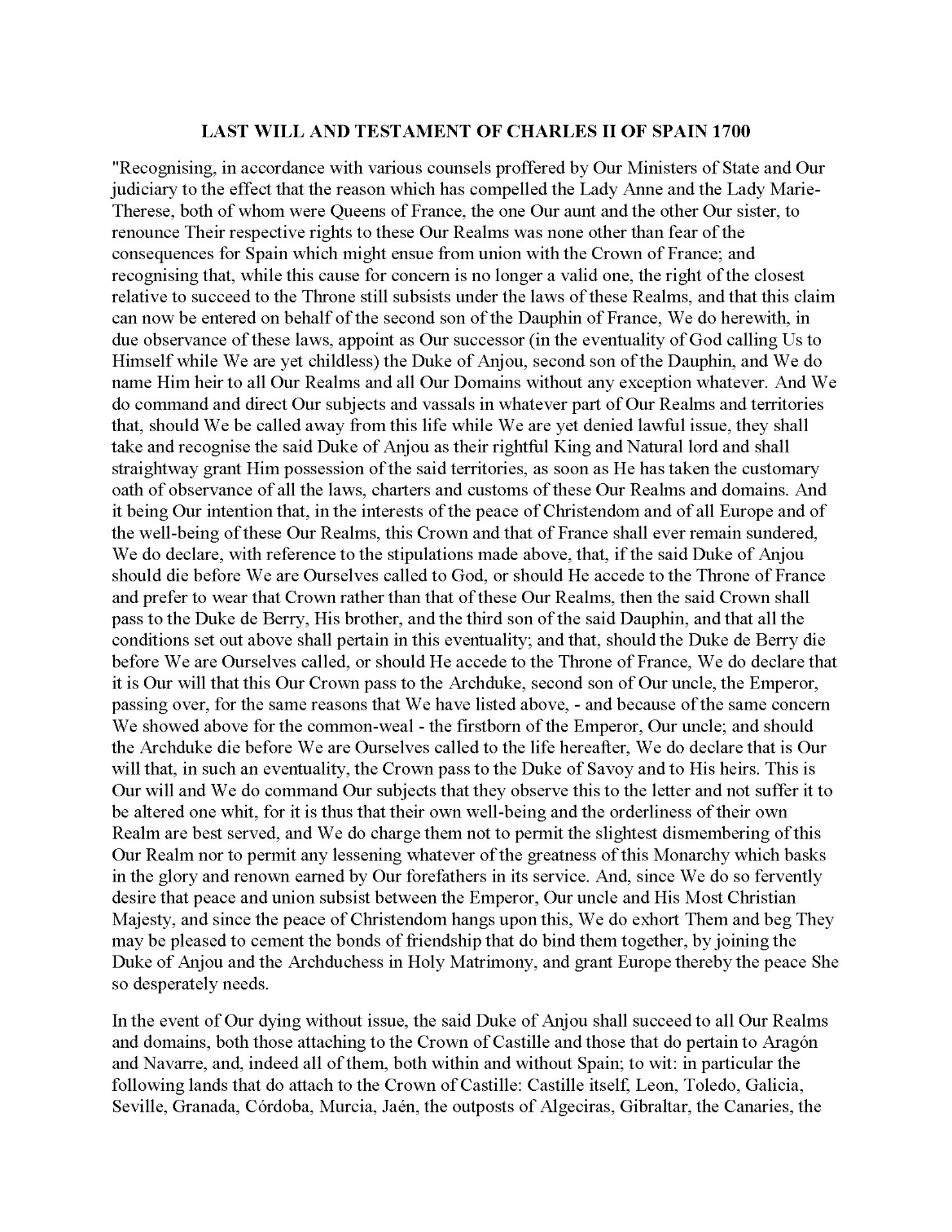 Last Will of Louis XVI, King of France