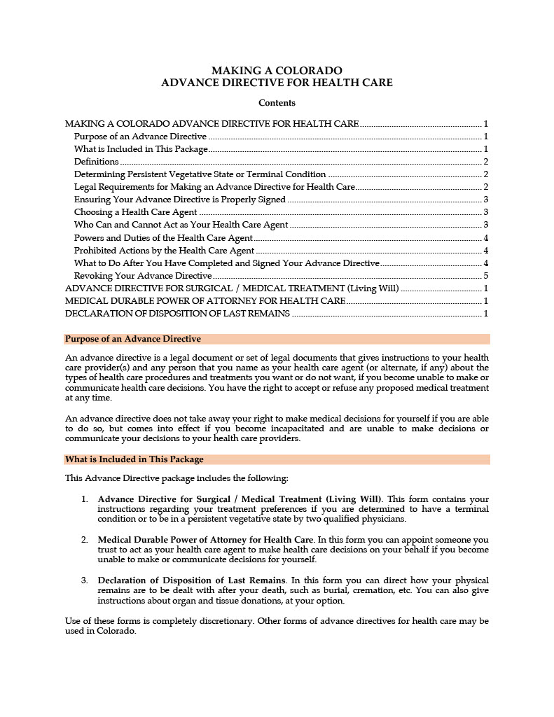 Make an Advance Medical Directive with this package of forms for residents of Colorado.