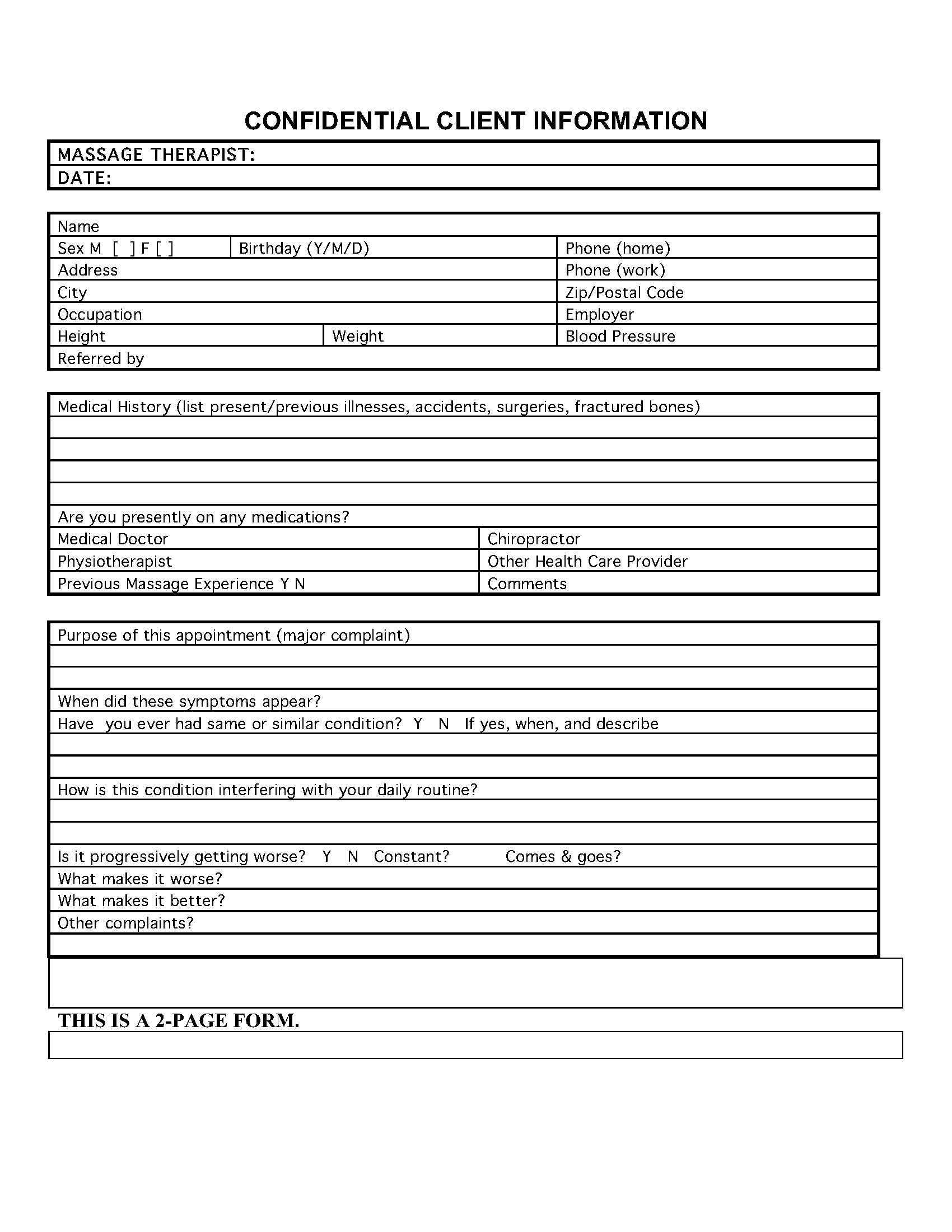 - The patient acknowledges the risks inherent to the procedure, and states that his/her participation in the massage session is voluntary.