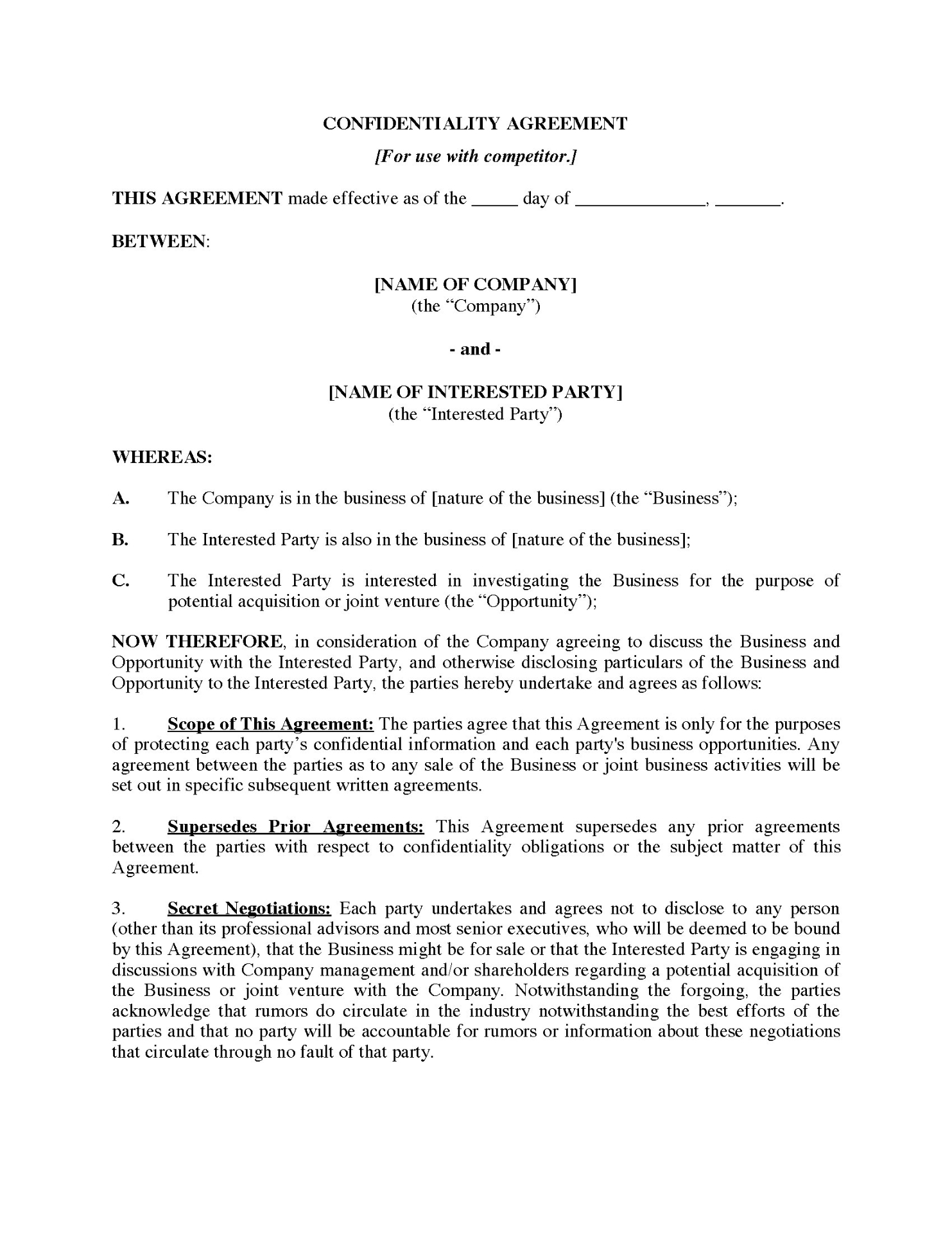 - Don't lose your competitive edge to an ambitious ex-employee. Buy the Employee Noncompetition, Confidentiality and Nondisclosure Agreement for your business.