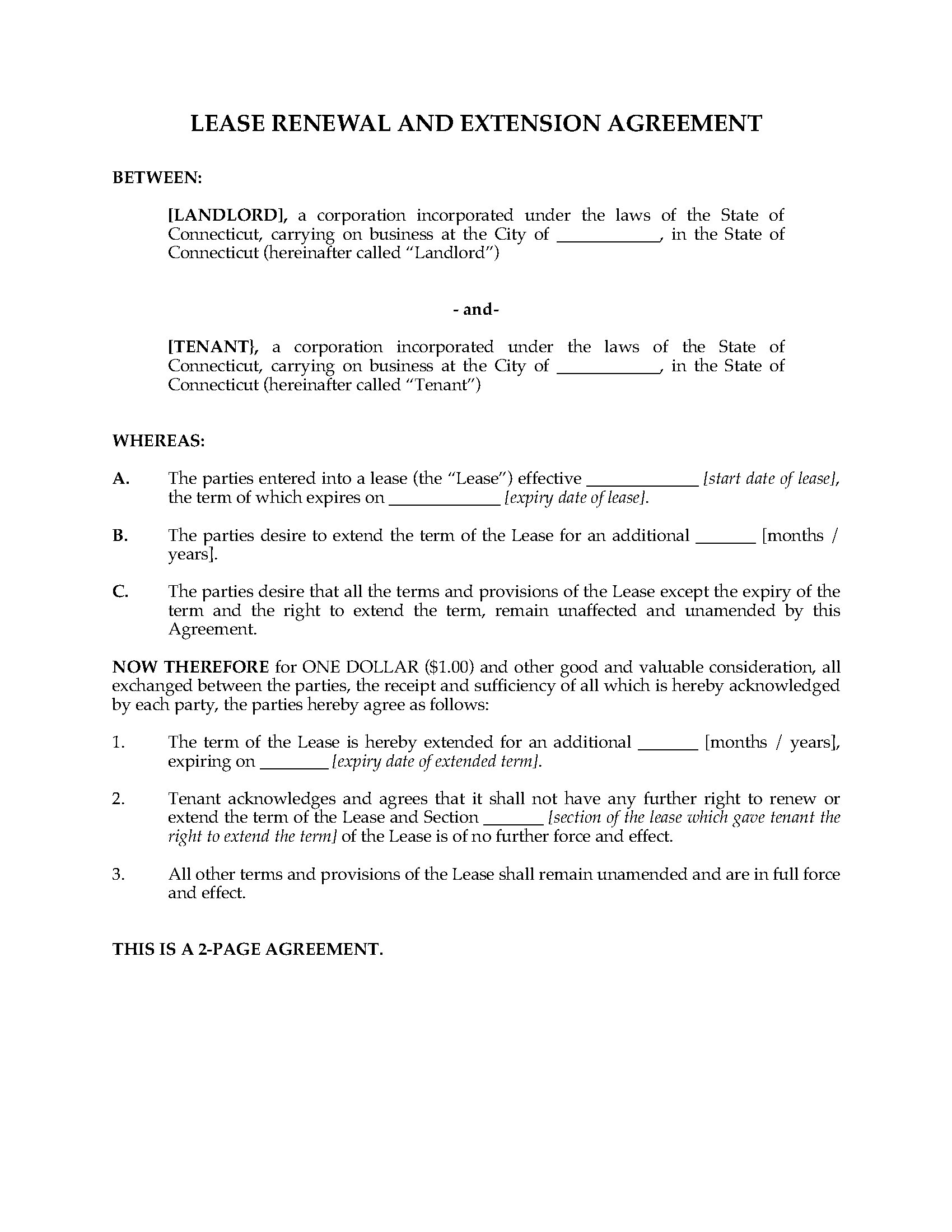 Connecticut Commercial Lease Agreement