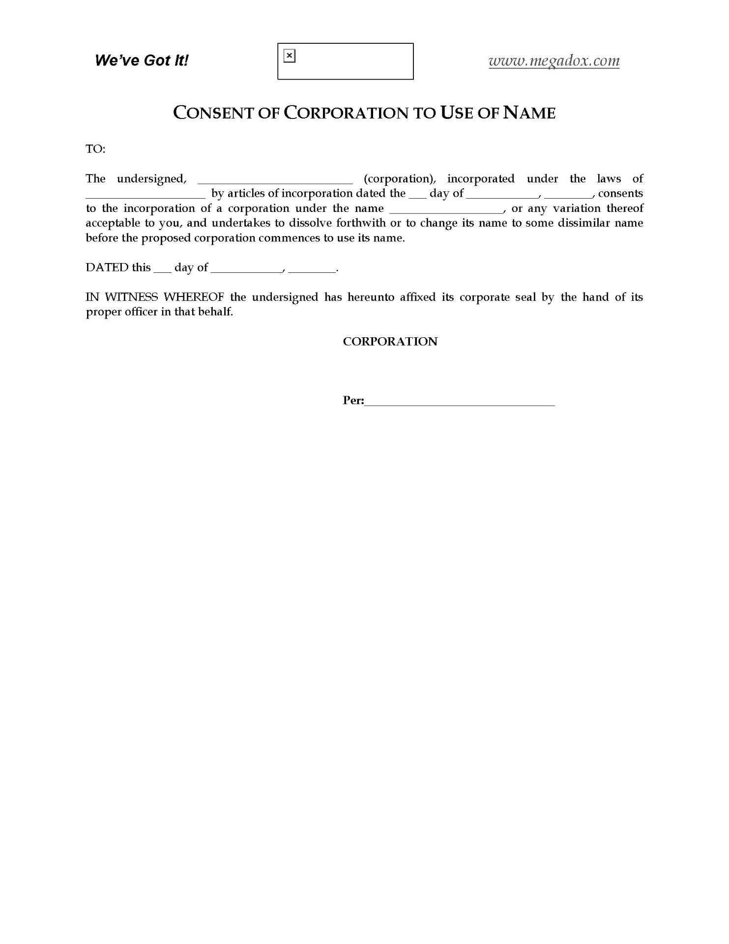 Starting up a new company that has your name as part of the corporate name? You'll need to sign a Consent Form for the company to use your name.