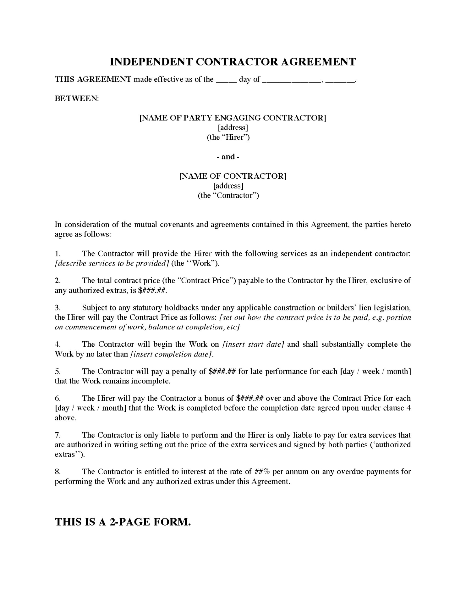 - This is a fully editable and reusable contract template intended for use only in Canada.