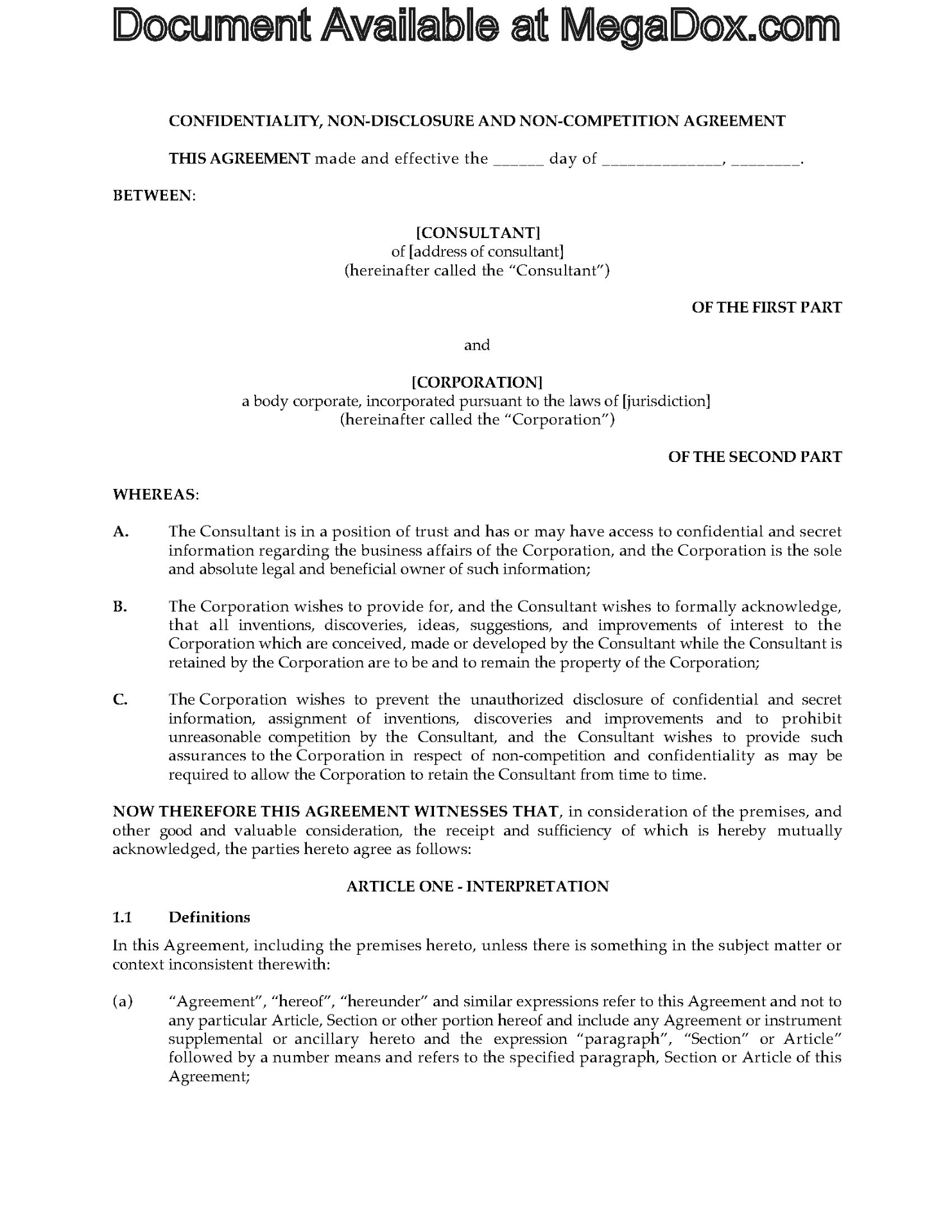 - The contract includes a confidentiality agreement to be signed by the consultant in order to protect intellectual property and trade secrets belonging to the company.