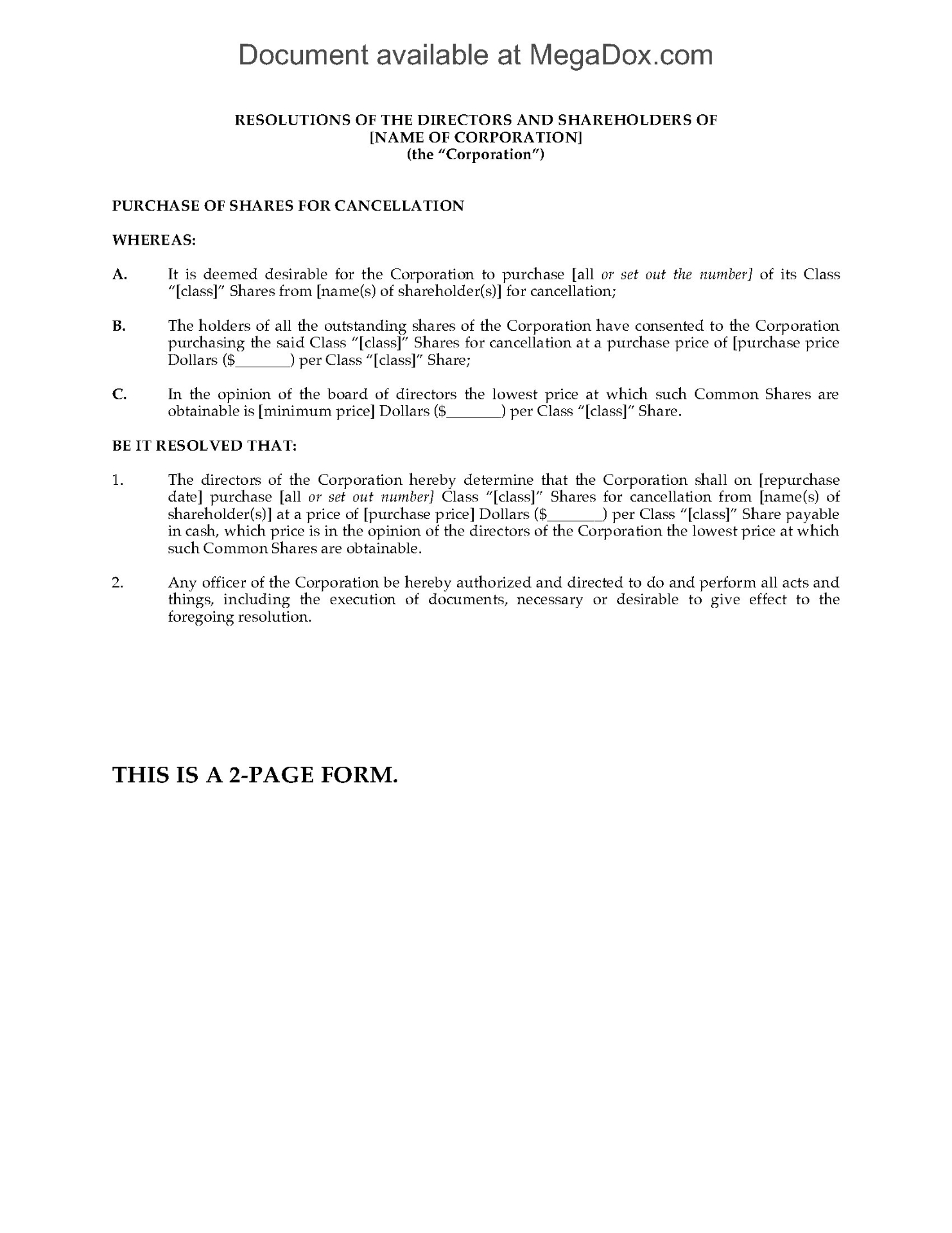 - The corporation will cancel the shares after buying them back.
