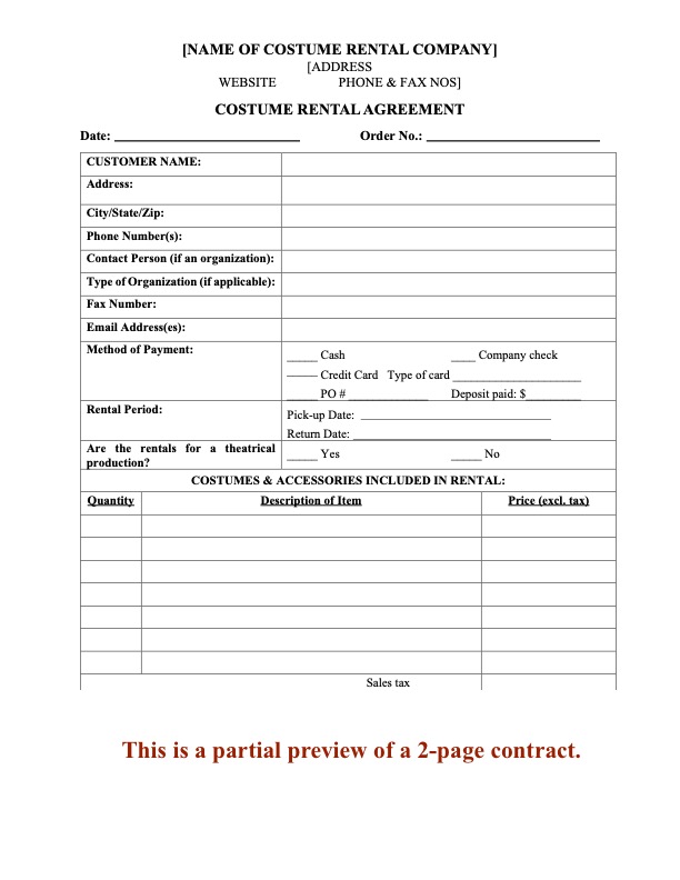 Create your own customer contracts with this easy-to-use Costume Rental Agreement template. This is a generic form that can be used anywhere.