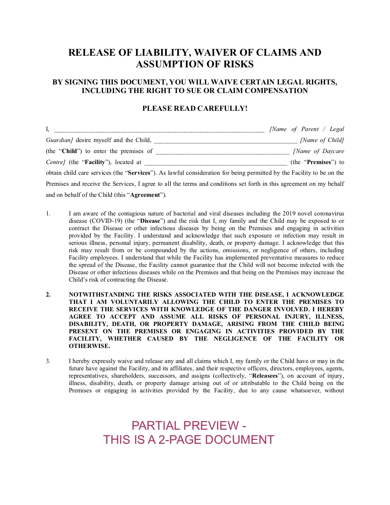 Have a parent or guardian sign this Child Daycare Service Agreement before you accept their child(ren) into your daycare facility.