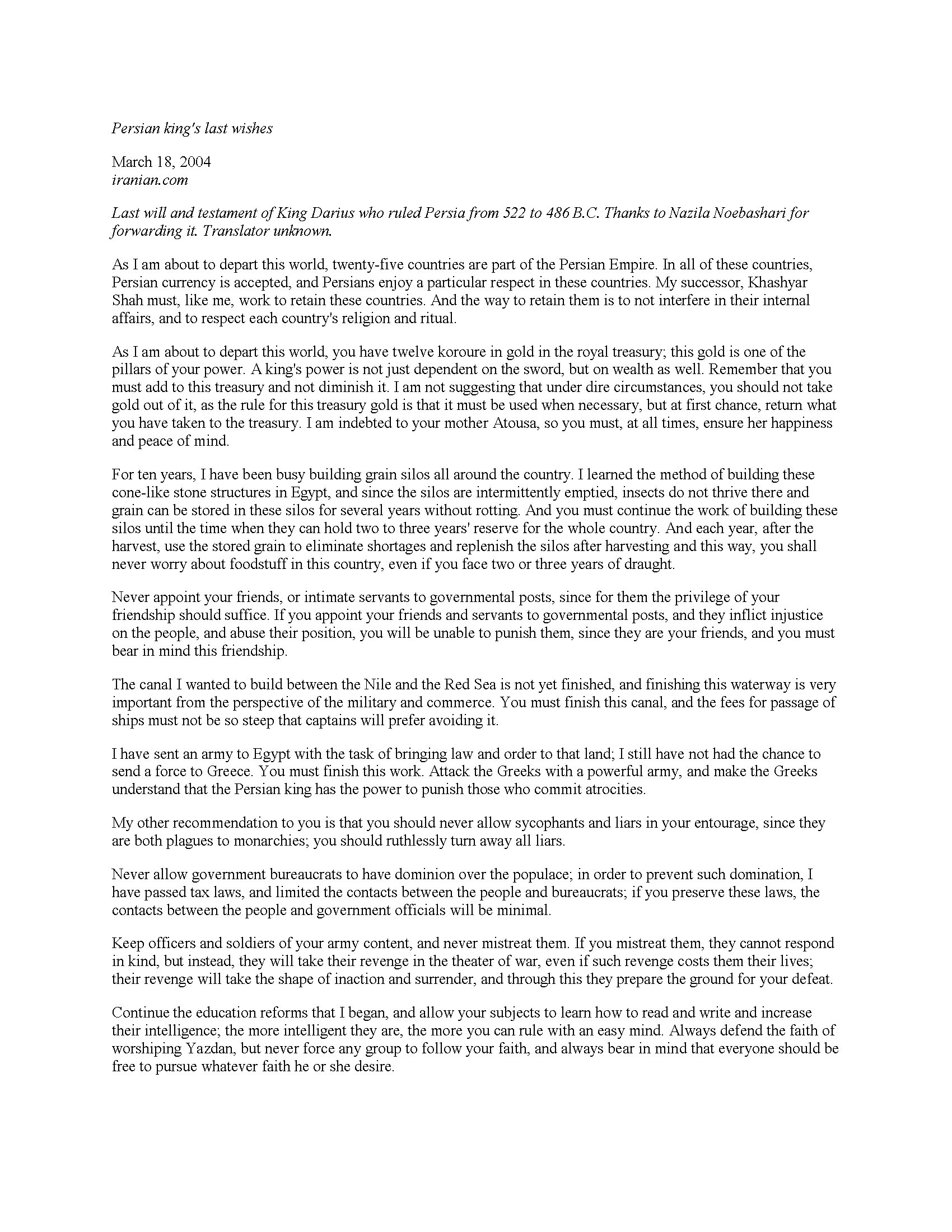 Last Will of Louis XVI, King of France