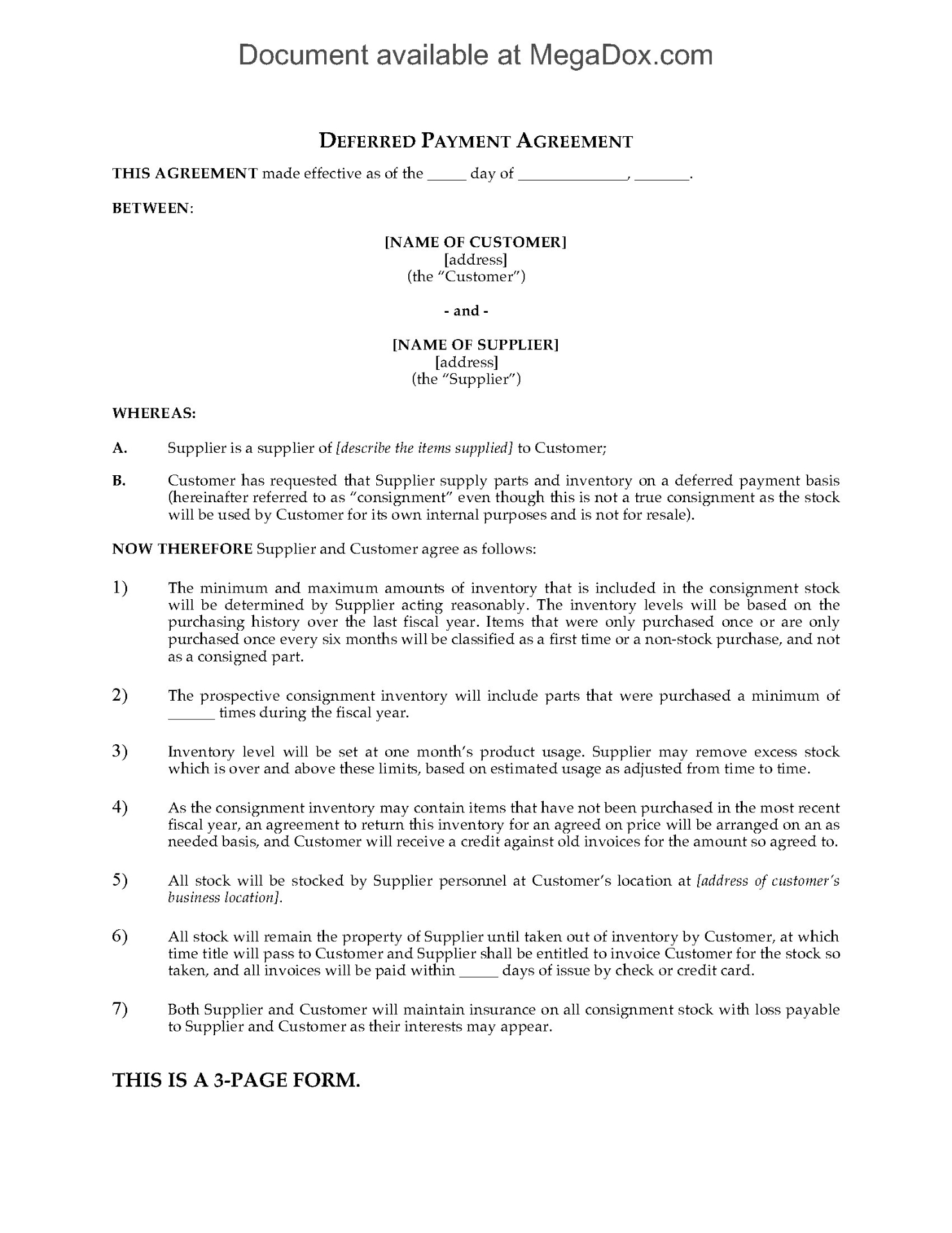 Your best customers deserve special treatment. This Deferred Payment Agreement is a great way to show how much you trust them and value their business.