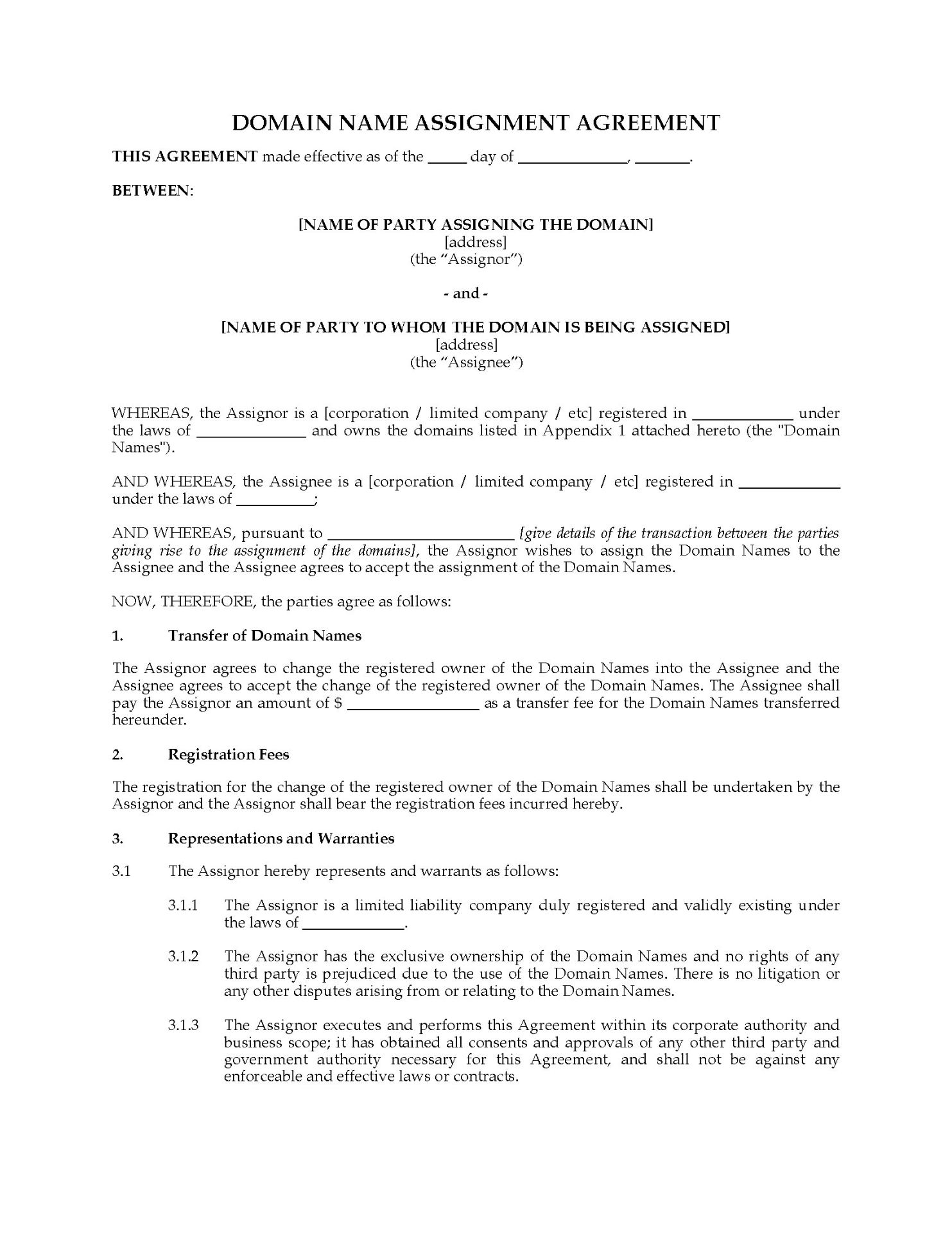 - The seller agrees to transfer the domain to the purchaser upon receipt of the purchase price.