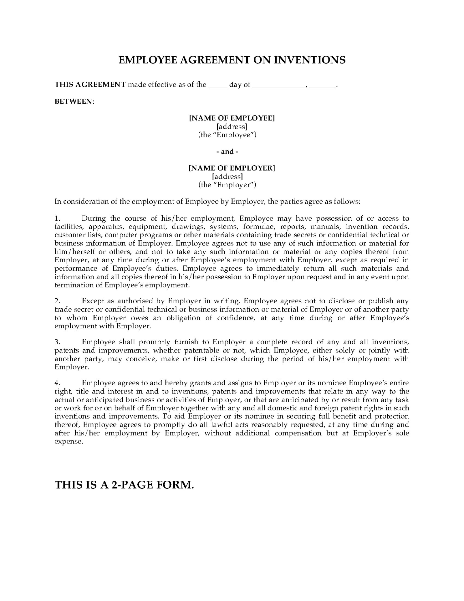 - The employee agrees to keep all proprietary information and data belonging to the employer confidential during and after the term of employment.